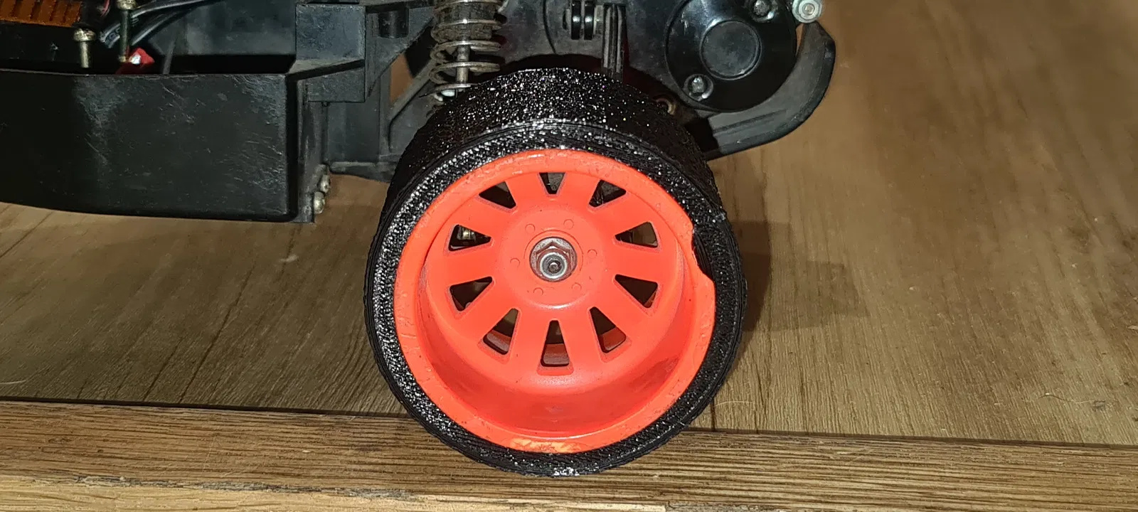 Đây là bộ lốp dành cho xe Tamiya Blitzer Beetle, giúp chiếc xe có thể drift mượt mà trên các bề mặt trơn. Bạn nên sử dụng tính năng 'fuzzy skin' trong cài đặt in để tạo độ nhám cho bề mặt bánh xe. Hình ảnh hiển thị là phiên bản trước đó với thành lốp thấp, còn thiết kế mới này đã được điều chỉnh để khớp chính xác với kích thước bánh xe nguyên bản (OE).