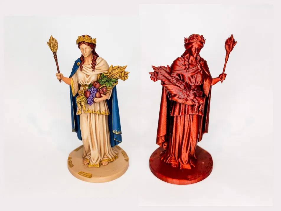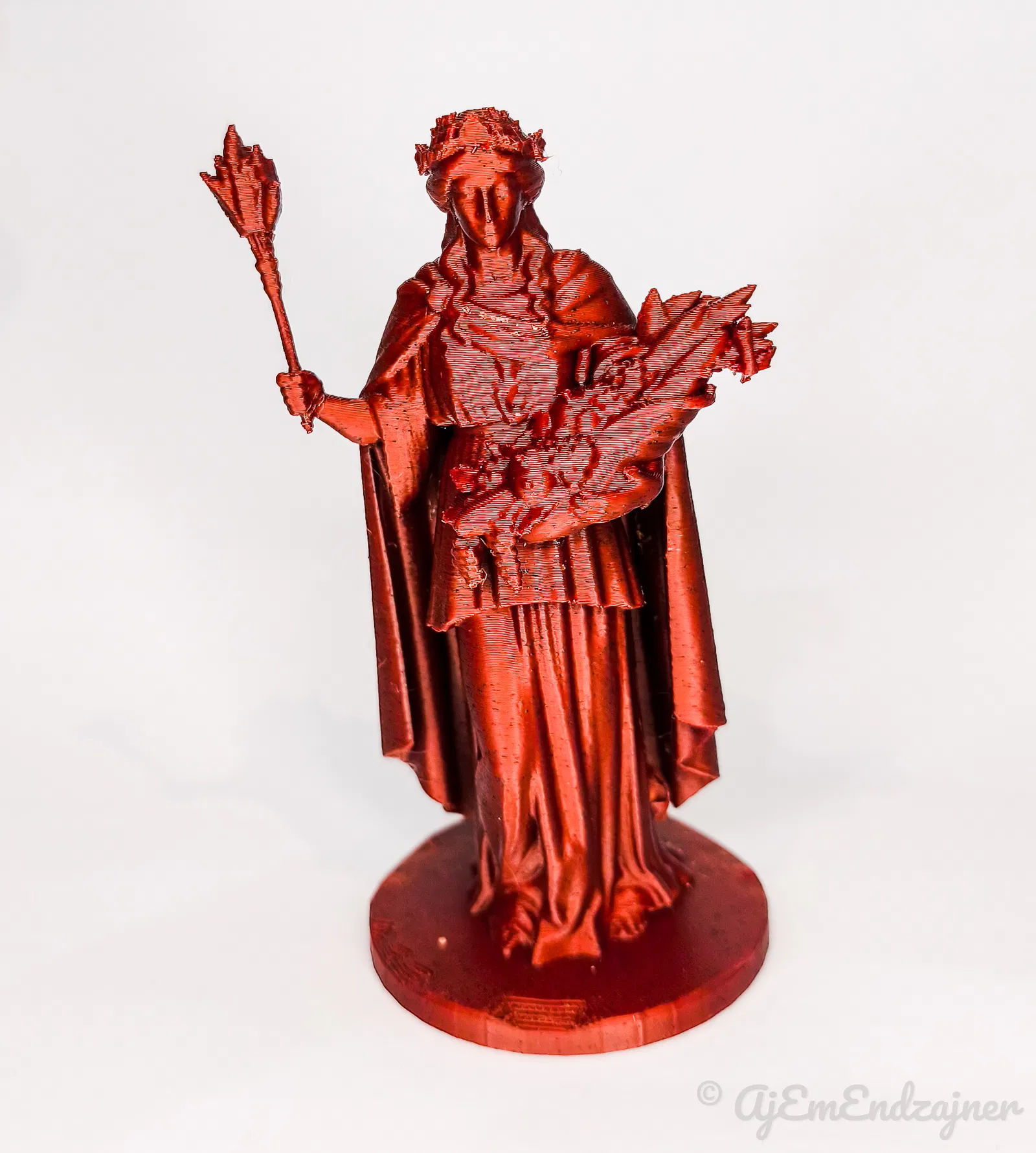 Mô hình nữ thần Demeter từ thần thoại Hy Lạp, được tạo ra với sự hỗ trợ của AI. Đây là mẫu in có độ chi tiết cao nhưng khá khó in, yêu cầu người chơi cần cẩn thận khi gỡ support, đặc biệt là các chi tiết nhỏ và mảnh như cây gậy.