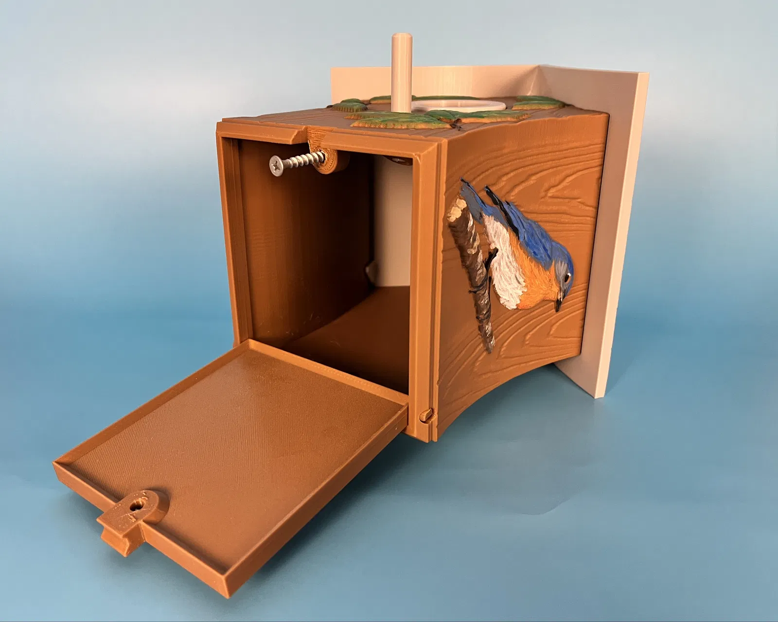 Chất liệu: Tối thiểu là phần mái, cầu đậu và lỗ ra vào nên dùng nhựa PETG (để đảm bảo độ bền và chịu thời tiết). Trước đây mình cũng từng dùng PLA cho phần đế trên một số mẫu nhà chim và thấy nó chịu đựng khá tốt ngoài trời.
