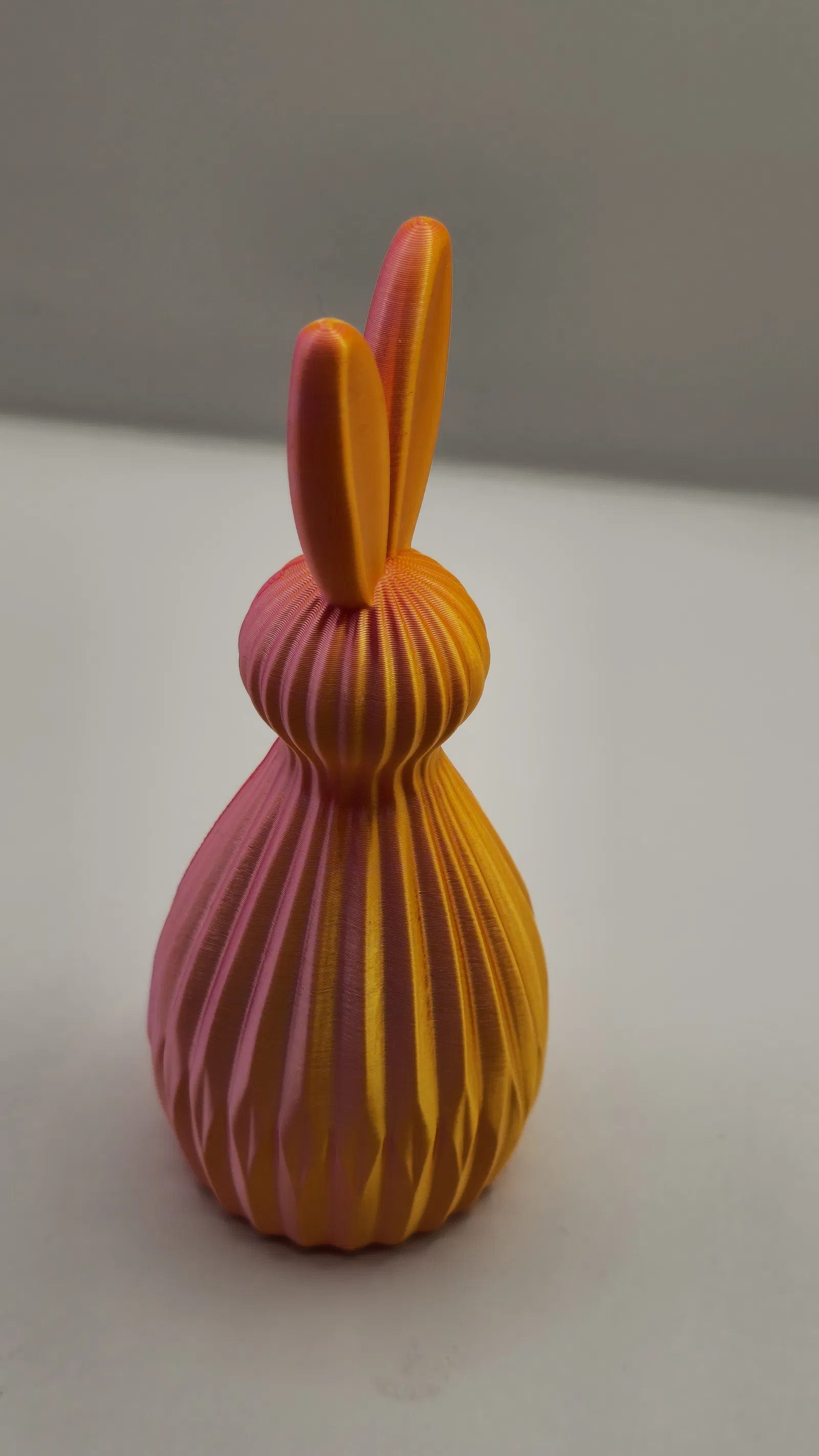 Kiểu dáng đơn giản và những đường cong mượt mà giúp chú thỏ này trở thành lựa chọn hoàn hảo cho các món đồ trang trí Phục sinh hiện đại, trưng bày mùa xuân hoặc decor nhà cửa phong cách tối giản. Họa tiết vân sọc làm tăng chiều sâu và tôn lên vẻ đẹp của các loại filament đặc biệt.