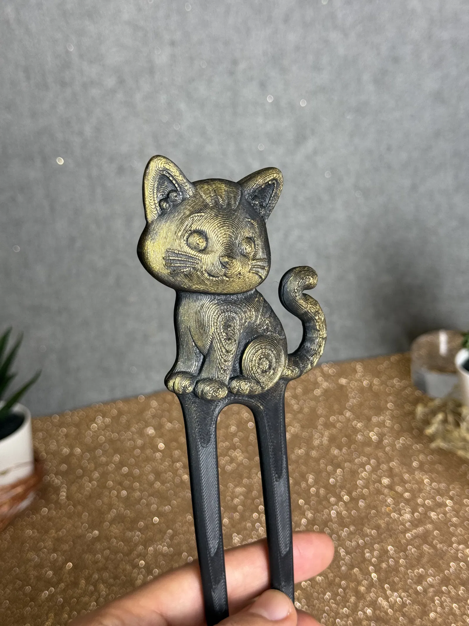 Kẹp tóc hình mèo dễ thương được thiết kế để in 3D, giúp tạo điểm nhấn xinh xắn và độc đáo cho mái tóc của bạn mỗi ngày.