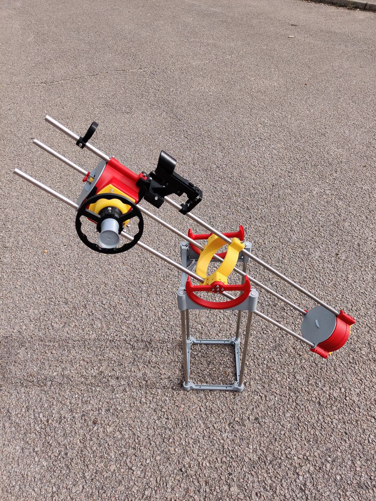 Khung rocker hình vuông gốc mà bạn thấy trong ảnh không đủ cứng cáp để trải nghiệm Hadley một cách tốt nhất. Các lựa chọn tốt hơn là: 1) đóng khung gỗ như trong bài viết gốc, 2) đóng khung bằng nhôm định hình và giá đỡ ổ bi in 3D, 3) sử dụng giá đỡ in 3D đã được cải tiến vượt bậc như của hoặc .