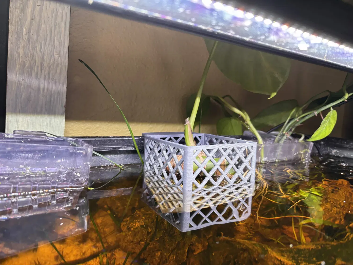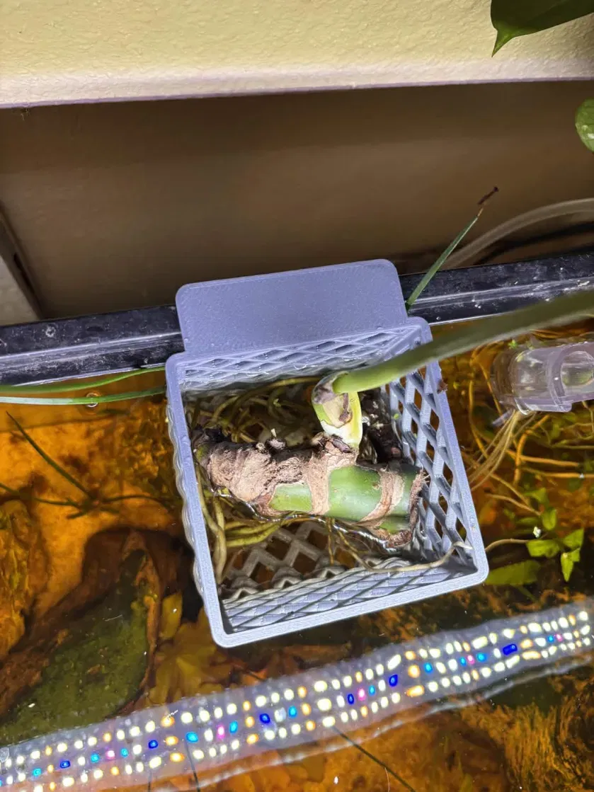 Mẫu giỏ trồng cây treo thành bể được thiết kế cho cạnh 18mm. Kích thước lòng giỏ 80mm x 80mm, tối ưu để in ngược mà không cần dùng support. Sản phẩm đầu tay được thiết kế trên Onshape, phù hợp cho các bạn chơi thủy sinh.