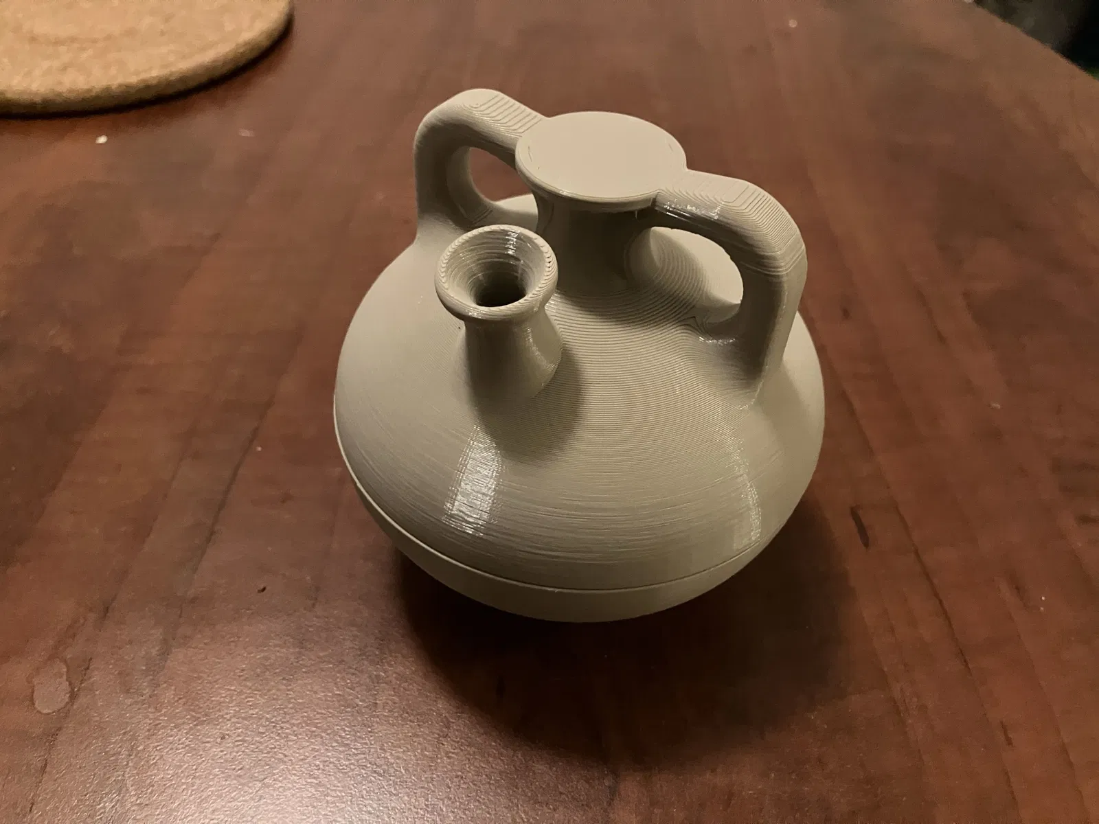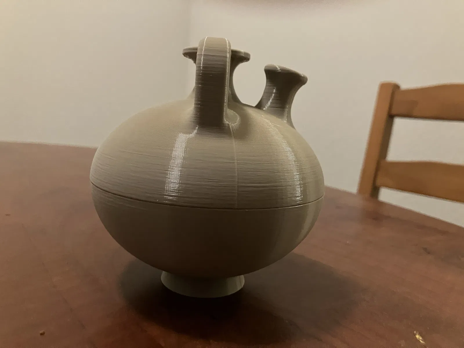 Đây là phiên bản in 3D của chiếc bình gốm Mycenaean stirrup jar được tìm thấy tại bảo tàng Met, cụ thể là vật phẩm mang mã số 74.51.770. Dự án này bắt đầu khi mình không tìm thấy mô hình 3D nào của loại bình stirrup jar trên mạng sau khi được học về nó trong một buổi lên lớp đại học. Vì vậy, mình đã tự tay thiết kế lại dựa trên các hình ảnh từ trang web của bảo tàng Met. Mình đã sử dụng các phần mềm 2D và thông số kích thước từ trang web để xác định hình dáng và các chi tiết của bình, sau đó dựng mô hình hoàn chỉnh trong OnShape. Mô hình của mình có thể in được, bên trong rỗng và có vòi. Tuy nhiên, mình không khuyến khích dùng nó để chứa chất lỏng trừ khi các bạn có cách xử lý kín phần bên trong. Mình đã gặp khá nhiều khó khăn khi in nguyên khối (bị lỗi tận 5 lần), nên mình đã chia nhỏ ra để in dễ hơn (hai tệp tin có chữ 'Split Print' ở đầu tên). Mô tả hiện vật từ trang web của bảo tàng Met cho biết: "Số lượng lớn bình gốm Mycenaean đã tràn ngập thị trường Síp từ đầu thế kỷ 14 trước Công nguyên, có lẽ là kết quả của mối quan hệ thương mại mật thiết giữa vùng Aegean và khu vực phía đông Địa Trung Hải. Stirrup jar là một trong những kiểu dáng bình phổ biến nhất của người Mycenaean dùng để chứa chất lỏng như dầu hoặc rượu vang. Tuy nhiên, cũng có khả năng một số chiếc bình, đặc biệt là loại được làm vào thế kỷ 13 trước Công nguyên, có thể được chế tác bởi các thợ gốm Mycenaean đang làm việc tại Síp. Ngày nay, việc đất sét từng là mặt hàng thương mại trong thời cổ đại cũng đã được ghi chép rõ ràng."