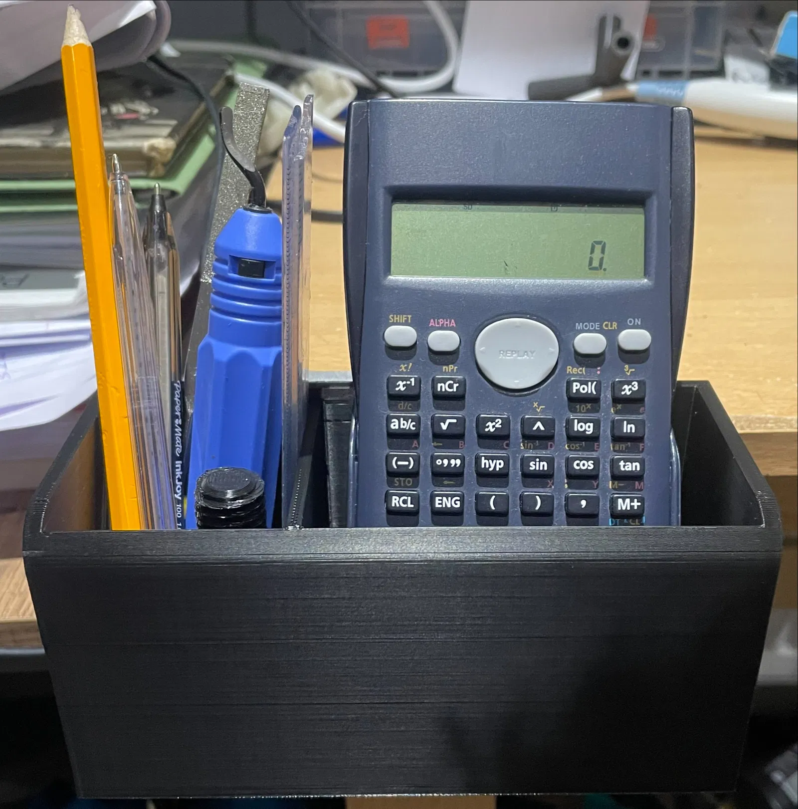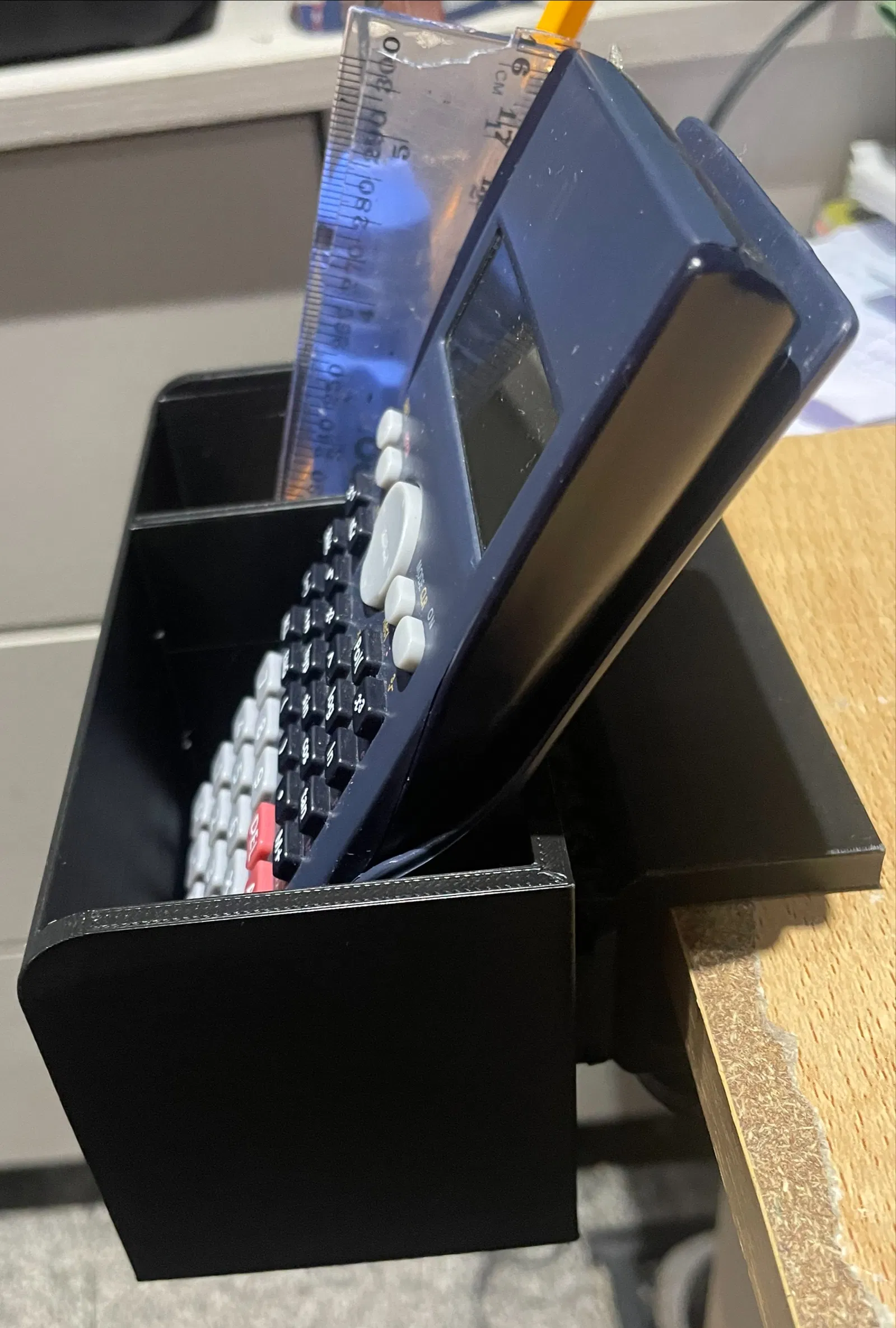 Nâng cấp không gian làm việc của bạn với kệ để đồ kẹp bàn in 3D hoàn toàn này, được thiết kế để bổ sung không gian lưu trữ tiện lợi mà không chiếm dụng diện tích mặt bàn quý giá. Phụ kiện này kẹp chắc chắn vào mép bàn, tạo ra một khu vực lưu trữ ổn định và dễ tiếp cận cho các vật dụng hàng ngày như máy tính bỏ túi, bút, thước kẻ, dụng cụ và văn phòng phẩm.