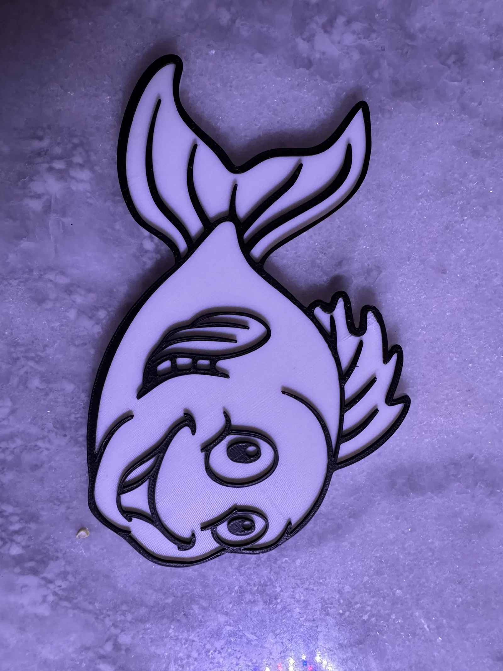 - Kỹ thuật in: Bạn có thể in hai màu bằng cách thay đổi sợi nhựa tại các layer đầu tiên hoặc sử dụng tính năng in nhiều màu (nếu máy hỗ trợ) để làm nổi bật đường viền và chi tiết chú cá.