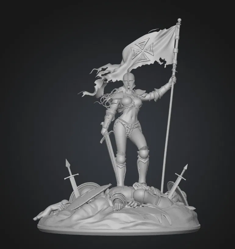 Chào các anh em đam mê in 3D, hôm nay mình xin giới thiệu một mẫu mô hình cực kỳ ấn tượng và đầy uy lực: "Shieldmaiden of the Iron Cross". Đây là tác phẩm dành cho những ai yêu thích dòng figure giả tưởng, chiến binh trung cổ với phong cách mạnh mẽ, gai góc. Hình ảnh nữ chiến binh oai phong đứng trên đống đổ nát của chiến trường, tay cầm thanh kiếm sắc bén và lá cờ chiến thắng khắc biểu tượng thập tự sắt tạo nên một bố cục vô cùng sống động và chi tiết.