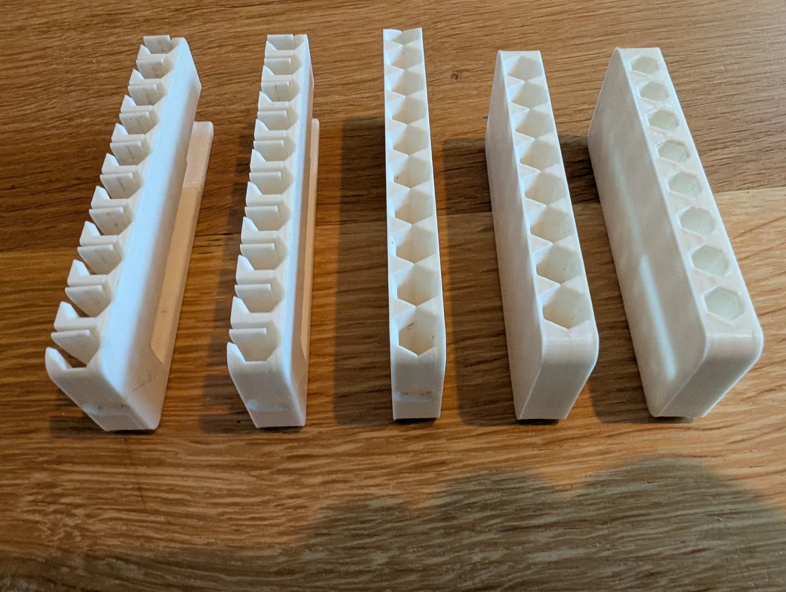 Đồ giữ đầu bit dành cho thanh nối dài Leatherman và 10 đầu bit tiêu chuẩn. Các khe được thiết kế vừa vặn để cất giữ đầu bit dẹt khi không sử dụng. Bạn có thể in bằng PLA hoặc PETG đều được, nhưng dùng PETG sẽ bền hơn một chút. Sản phẩm này không cần hỗ trợ (support) khi in.