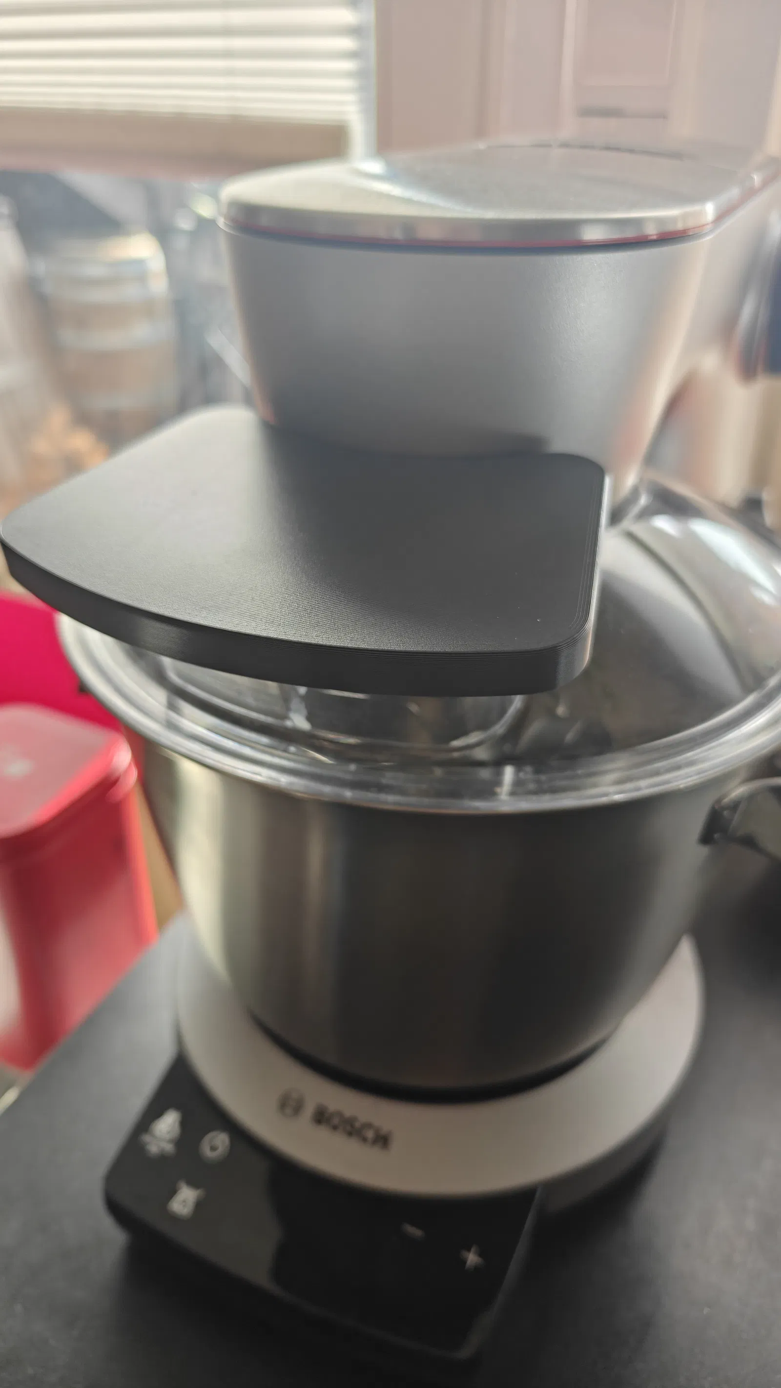 Đây là một món phụ kiện cực kỳ hữu ích cho các dòng máy trộn bột Bosch OptiMUM Series 8. Nắp đậy này được thiết kế để đặt vừa khít lên chắn văng (splash guard) có sẵn, giúp bảo vệ âu trộn khỏi bụi bẩn khi bạn không sử dụng máy.