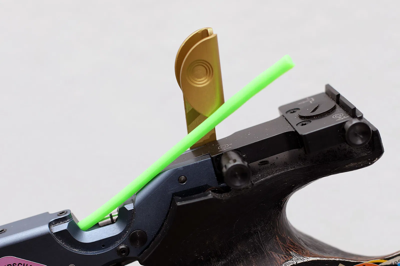 "Sicherheitsfaden-LP_2" có thiết kế mỏng và bo tròn ở đầu giúp luồn vào nòng dễ dàng hơn. Ở phía sau có ba gờ hơi lớn hơn một chút. Khi kéo cờ ra ngoài, các gờ này có tác dụng làm sạch sơ bộ nòng súng. Lưu ý rằng đây không phải là công cụ thay thế cho bộ vệ sinh chuyên dụng, vì phần này có đáy phẳng nên không tiếp xúc hết bề mặt bên trong nòng.