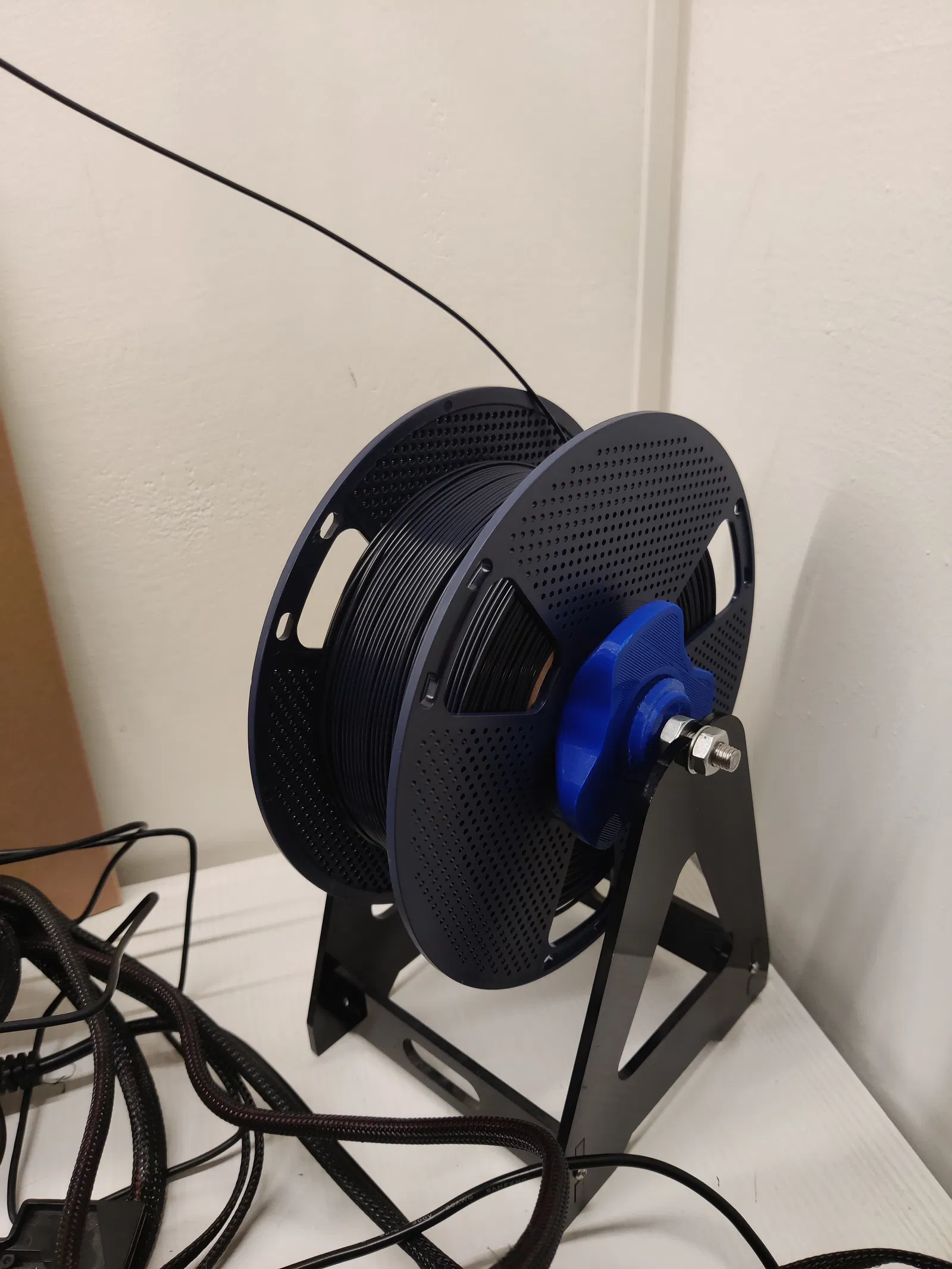 Mình muốn tìm một loại giá đỡ cuộn in có thể vừa với tất cả các cuộn nhựa mình đang có, nhưng mấy mẫu trên mạng làm mình không ưng ý lắm. Thiết kế này tự động định tâm cuộn nhựa ngay khi vặn chặt đai ốc, nhờ đó giảm bớt áp lực cho động cơ đùn. Phần ren được thiết kế để dễ dàng tháo lắp mà vẫn đủ chắc chắn, đảm bảo không bị bung ra ngoài ý muốn trong quá trình in. Bạn có thể in mà không cần support. Mình đã dùng PLA+ của Sunlu để in mẫu này. Lỗ tâm có đường kính 9.5 mm; trong thiết lập đơn giản của mình, mình dùng thanh ren M8 nên vẫn còn dư nhiều không gian cho cuộn nhựa xoay thoải mái. Nếu bạn nào cần, mình có thể chỉnh sửa lại thiết kế để phù hợp với các kích thước trục khác.