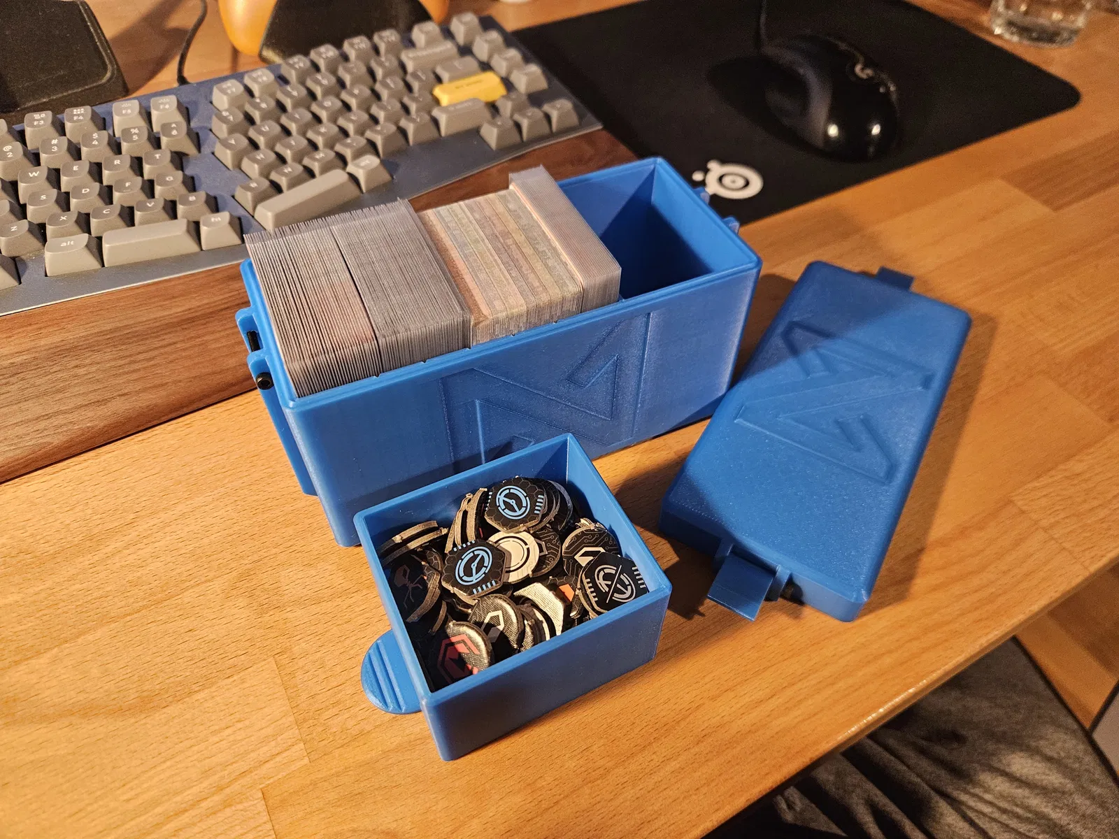 Đây là hộp đựng bộ bài System Gateway từ Null Signal Games. Thiết kế bao gồm một ngăn kéo nhỏ để chứa các loại token. Không gian bên trong đủ rộng để cất giữ hai bộ bài đã bọc sleeve và các lá bài còn lại chưa bọc (vẫn còn dư chỗ). Ngoài ra còn có các rãnh để bạn gắn thêm vách ngăn (divider) nếu muốn.