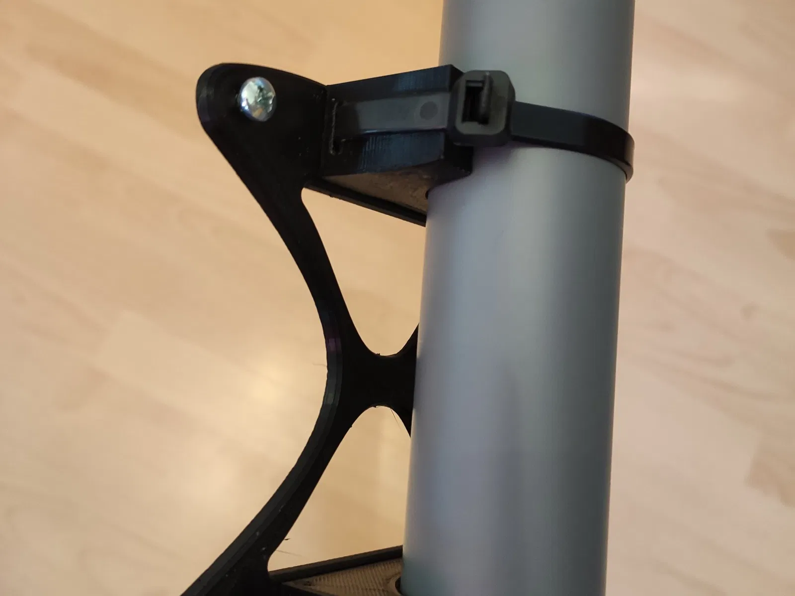 Đối với thiết lập máy tính của tôi, tôi cần gắn một màn hình thứ ba vào thiết lập đôi này ().Tôi đã làm một khối kẹp cho ống PVC 40 mm để phù hợp với giá đỡ VESA tuyệt vời từ Hacky97 ().Bạn cần in 2 cái này và gắn chúng bằng một số dây buộc.