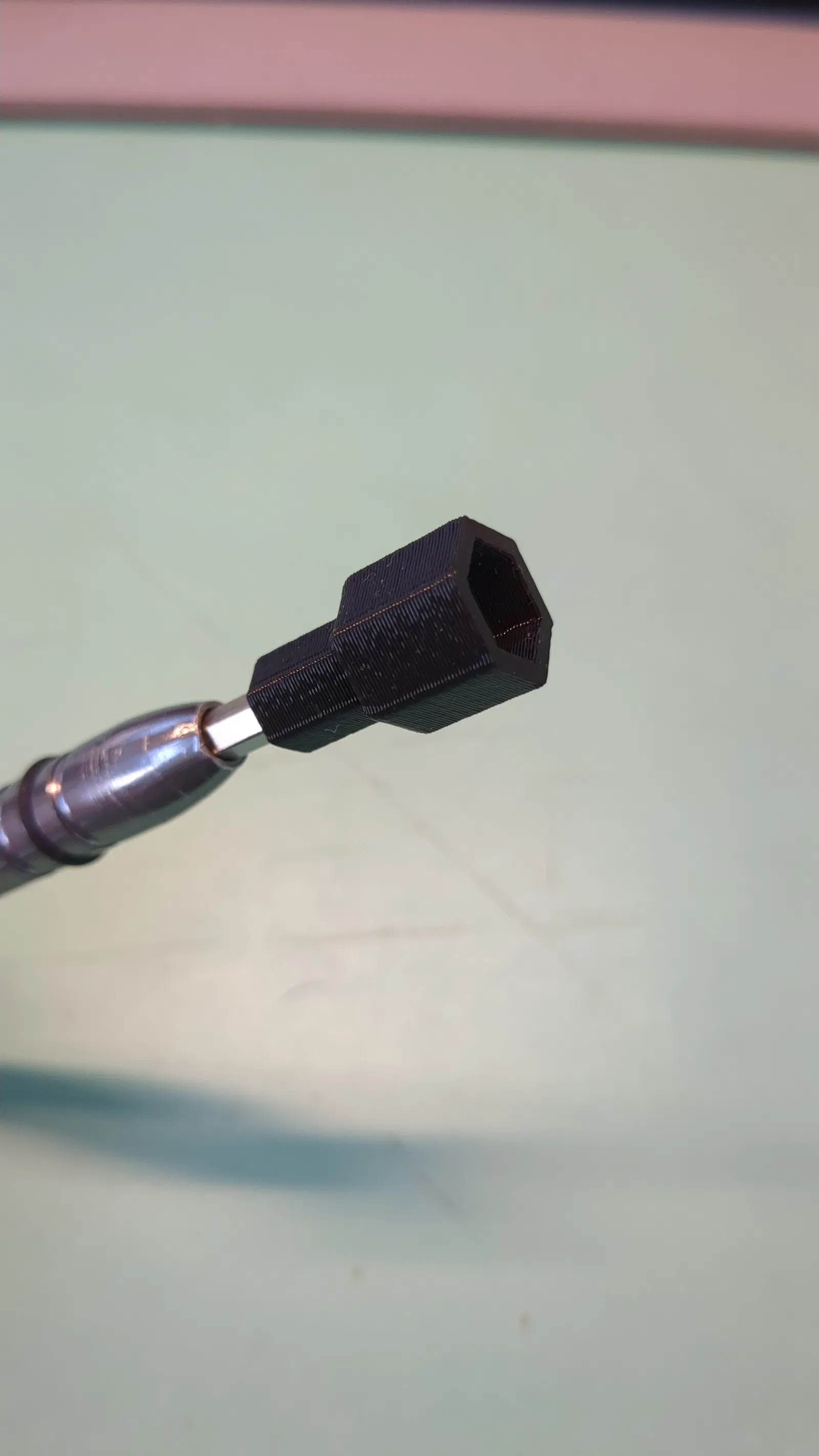 Dụng cụ này giúp chuyển đổi từ đầu lục giác (hex driver) 4mm sang đầu vặn ốc 8mm. Tui thiết kế nó cho bộ tua vít iFixit của mình, nhưng tui tin chắc là nó cũng sẽ dùng tốt với các loại tua vít khác cùng chuẩn.