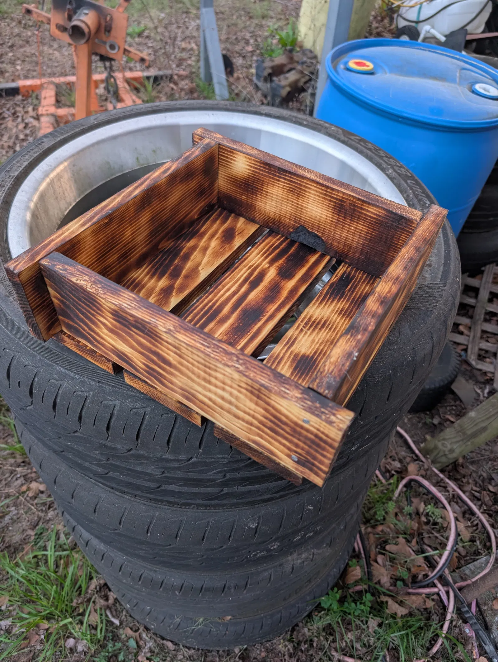 Bộ khuôn (jig) và thanh đệm giúp bạn đóng hộp trồng cây bonsai từ các tấm gỗ có kích thước 87mm x 290mm x 19mm mà không cần phải cưa cắt. Mục tiêu là tận dụng nguyên vẹn các tấm gỗ, tạo nên một kiểu dáng hơi chờm ra ngoài trông rất thẩm mỹ. Bộ jig này giữ hai tấm gỗ ở đúng độ chồng khít để phần đáy được đặt phẳng với các mặt bên. Ngoài ra, còn có một chi tiết phụ nhỏ để gắn vào jig, giúp bạn vạch một đường ở giữa tấm gỗ để đóng đinh chuẩn xác mà không lo bị lệch. Sau khi hoàn thiện, hộp có không gian bên trong khoảng 252x252mm (~10x10 inch). Hệ thống thoát nước gồm các khe hở rộng 15mm ở giữa; nếu cần thoát nước nhiều hơn, bạn có thể khoan thêm lỗ trên các tấm gỗ. Bản thân mình đã đốt cháy bề mặt gỗ và quét dầu tung (tung oil) để tăng khả năng chống nước và độ bền cho hộp.