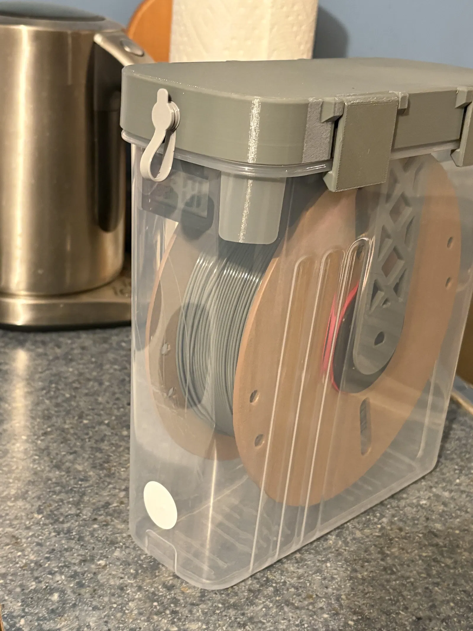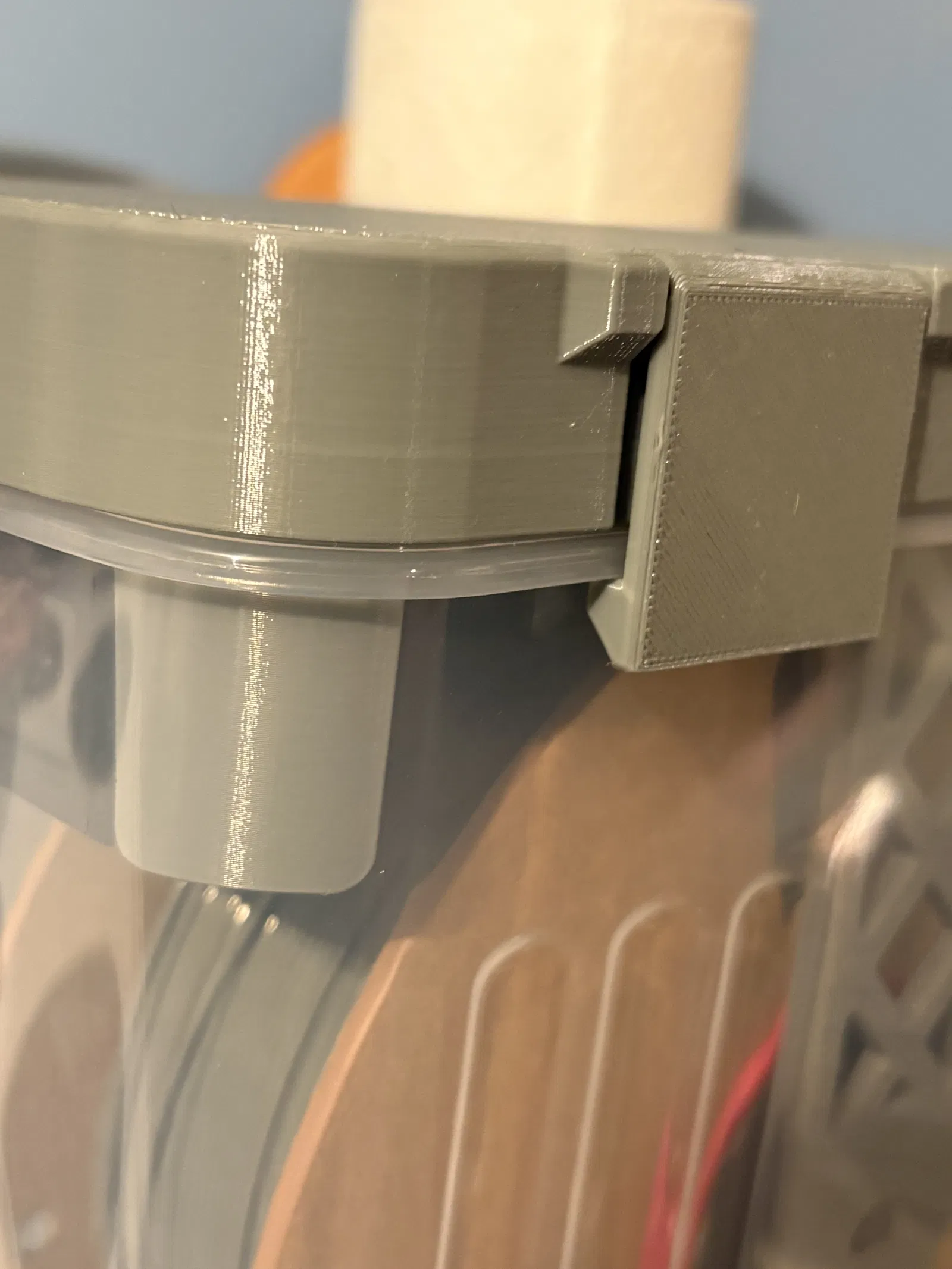 Khi lắp hộp đựng hạt hút ẩm vào nắp, mình đã lỡ tay làm gãy một cái ngàm... có thể là do mình hơi hậu đậu, nhưng mình thấy có cách dễ dàng là gia cố thêm độ dày cho phần đế của ngàm nên mình đã cập nhật vào thiết kế này.