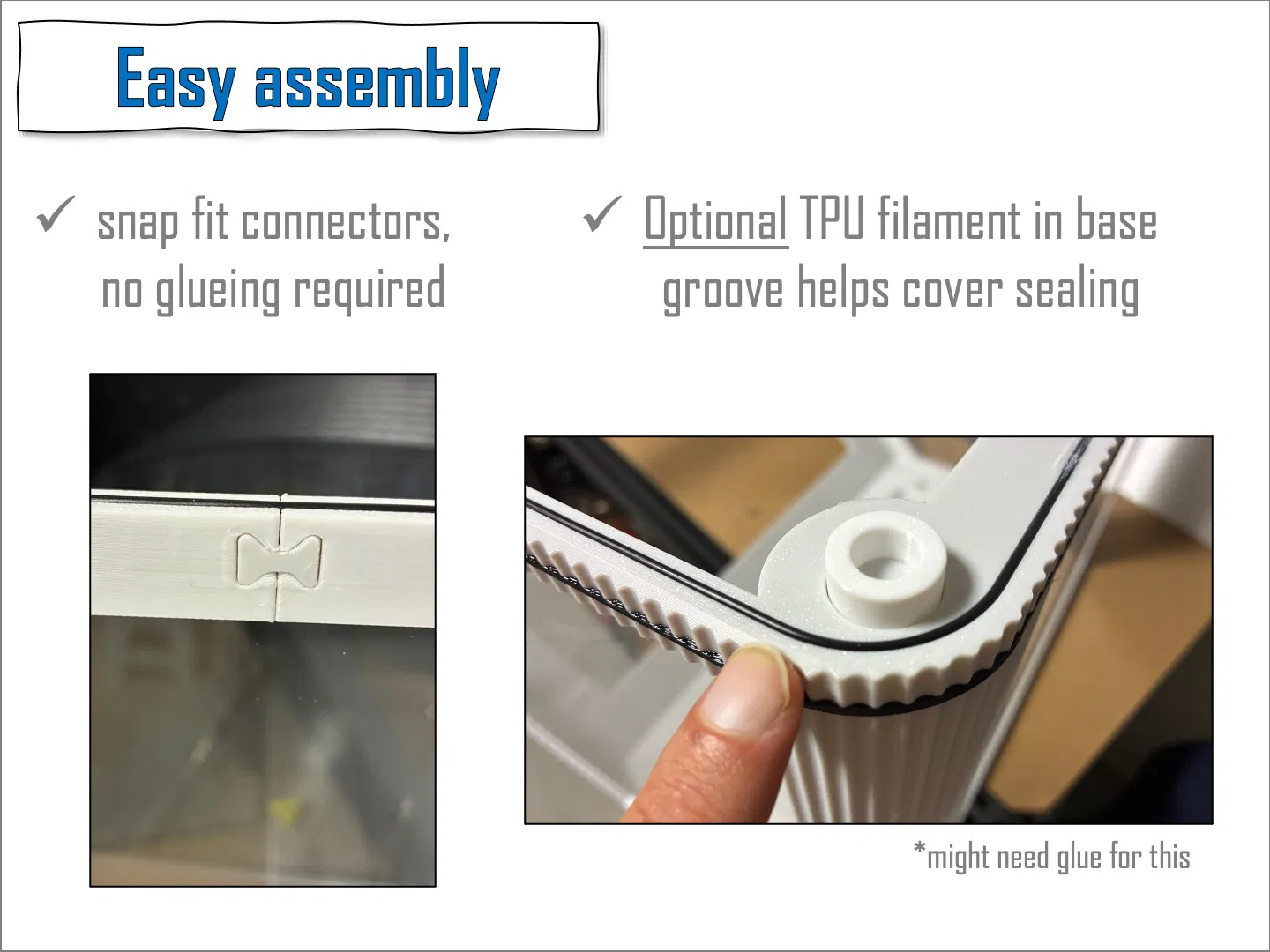 - Tùy chọn: cắt và nhét sợi nhựa TPU vào rãnh đáy để làm kín hơn.