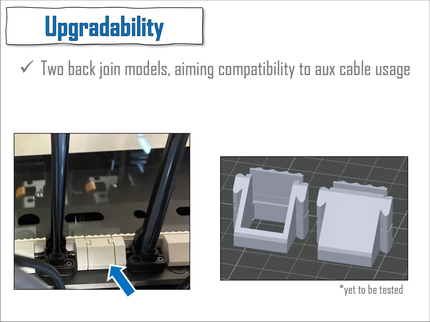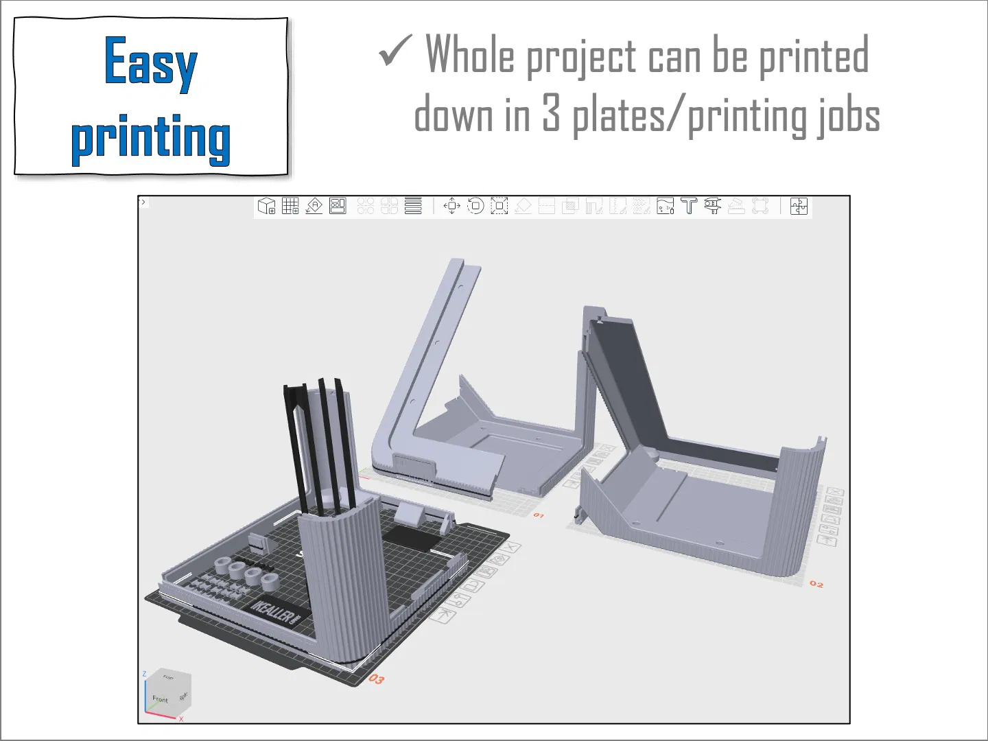 Có chi phí về nhựa in, thời gian in và phụ kiện tương đương với giải pháp IKEA nhưng mang lại nhiều tính năng và kiểu dáng đẹp mắt hơn. Thiết kế tối ưu hóa việc sử dụng tấm mica để tiết kiệm nhựa in, thời gian và công sức. Các phiên bản mặt bên và mặt sau đóng kín có thể sẽ được bổ sung sau tùy theo nhu cầu.