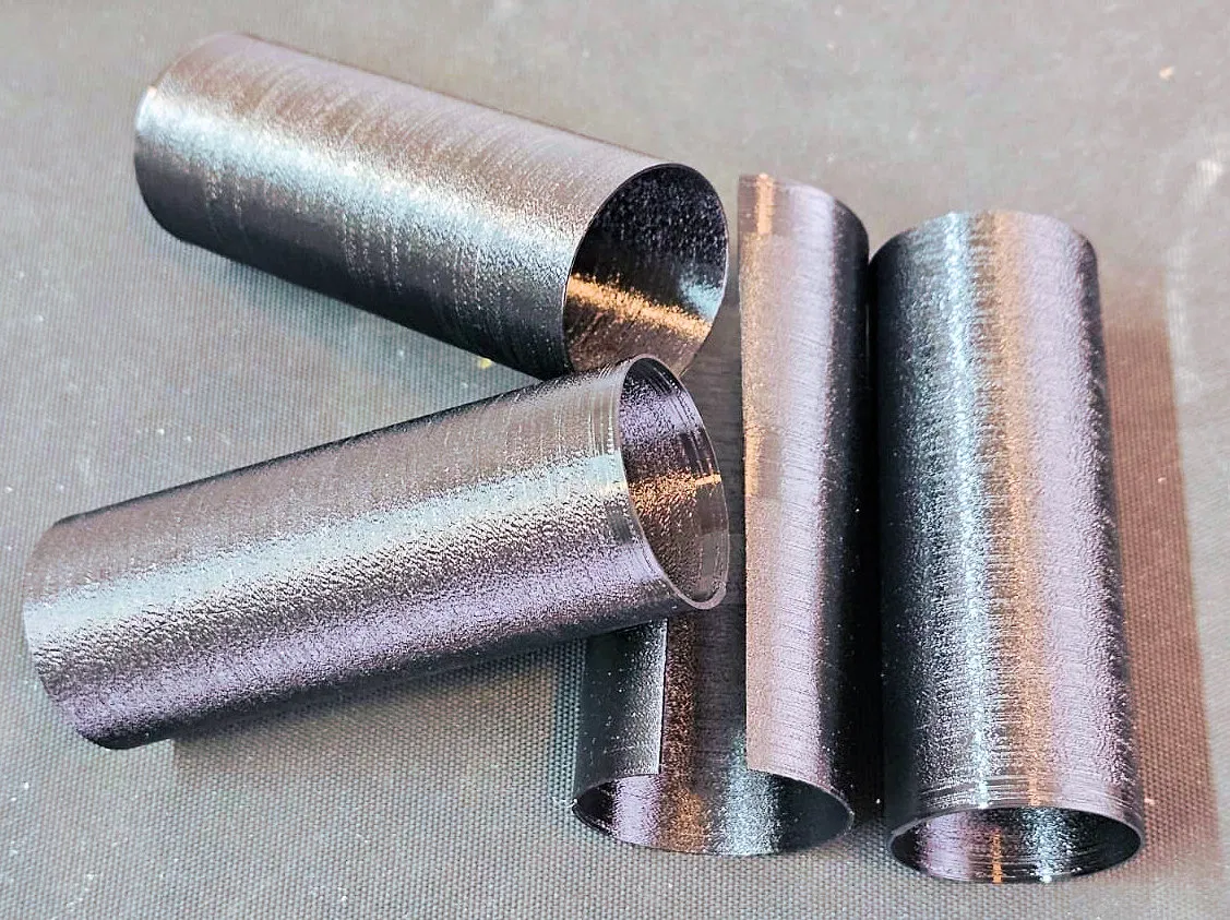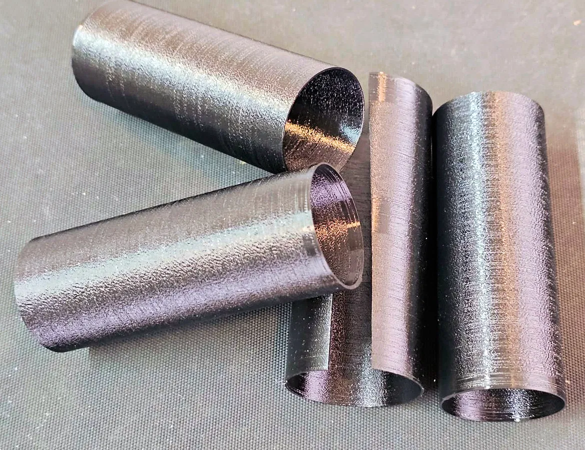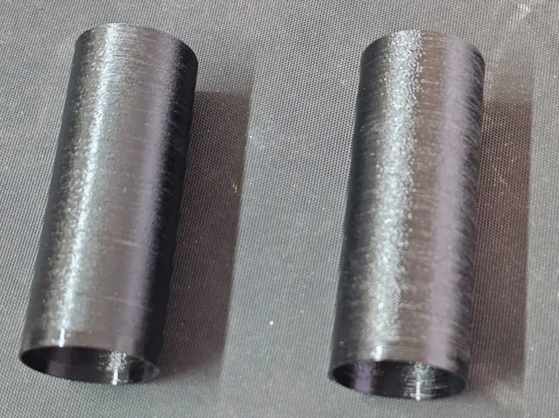 Một ống hình trụ thành mỏng với đường kính 34 mm và chiều dài 90 mm. Độ dày thành ống là 0.7 mm, in ở chế độ vase mode, không có lớp đáy và lớp trên.