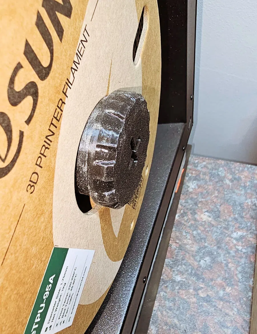 Sử dụng eSun TPU95A đã sấy 6 tiếng ở 55°C. Khi in, mình để hở trong phòng có độ ẩm 40%. Sau khi in, mình cắt dọc ống, luồn vào đường ống, dán bằng keo silicon và cố định bằng dây rút.