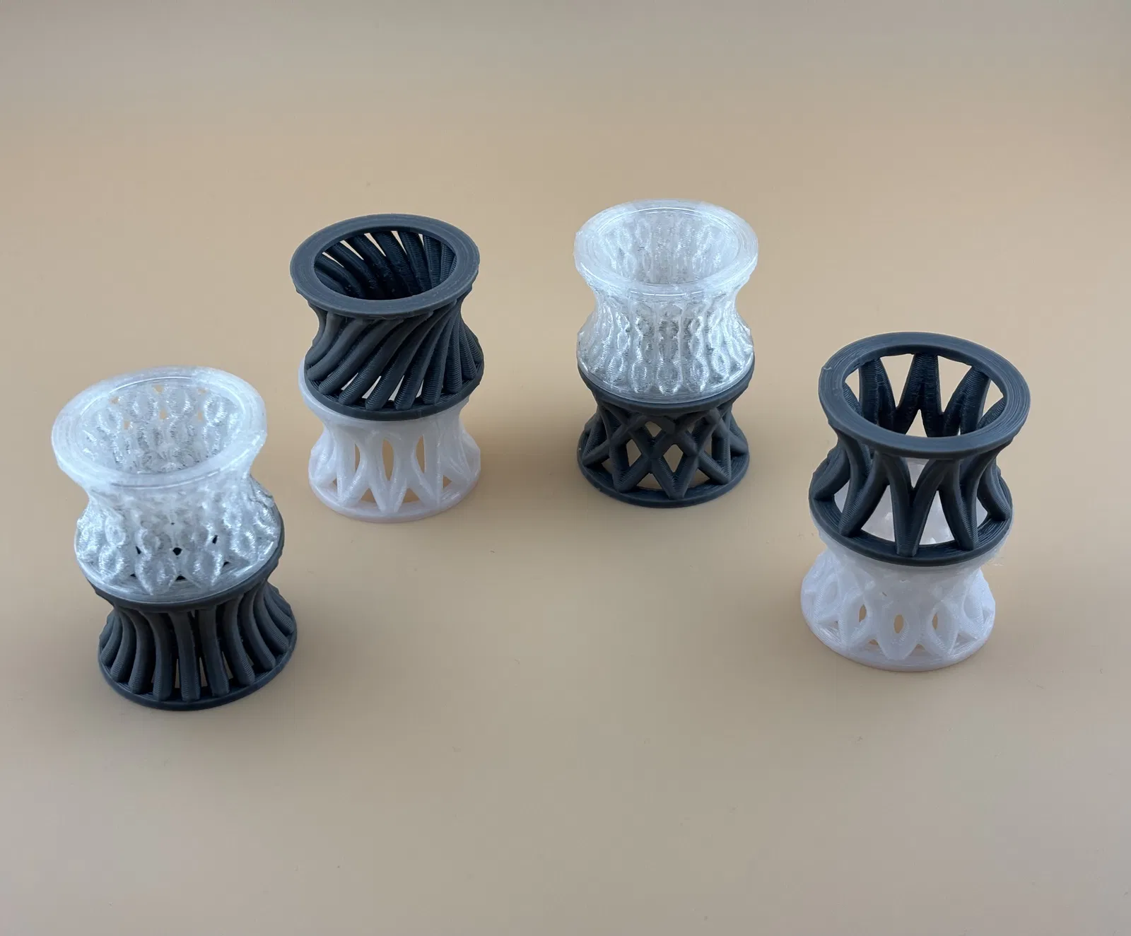 Những vòng nhẫn hình xuyến lấy cảm hứng từ lỗ sâu (wormhole) này mang đến sự kết hợp độc đáo giữa trải nghiệm giác quan và công năng thực tế. Mỗi chiếc vòng sở hữu họa tiết lưới riêng biệt đầy lôi cuốn, tạo thành món đồ chơi fidget cực kỳ thú vị cho cả trẻ em lẫn người lớn. Hình học tròn ổn định của chúng cũng là vật đỡ hoàn hảo cho trứng, bóng hoặc các món đồ trang trí nhỏ. Hãy in thử một chiếc hoặc trọn bộ để bổ sung thêm nét độc đáo đầy tính xúc giác cho bàn làm việc, kệ sách hoặc bộ dụng cụ hỗ trợ giác quan của bạn.