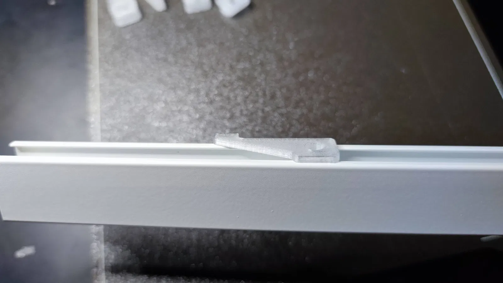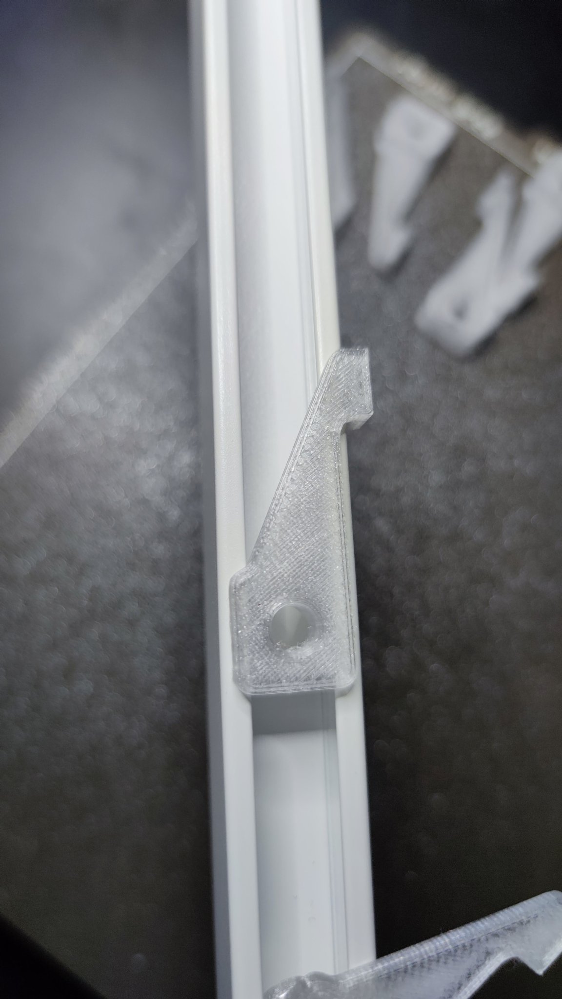 Tôi đã phải cắt thanh rèm dài Ikea Vidga thành hai phần, nhưng chỉ có giá treo trần cho một phần, vì vậy tôi đã tạo ra mô hình này để có thể sử dụng phần còn lại. Thiết kế giá treo ban đầu đã được điều chỉnh một chút để dễ in hơn. Tôi đã sử dụng PETG trong suốt để làm cho giá treo ít nổi bật hơn.