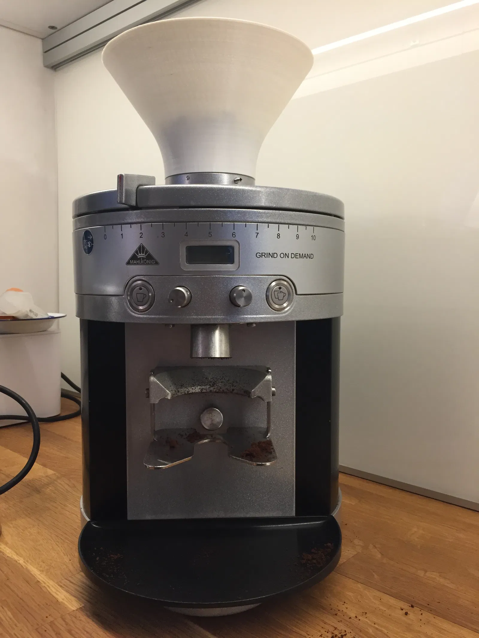 Nếu bạn đang sở hữu chiếc máy xay cà phê chuyên nghiệp Mahlkonig K30 nhưng lại gặp khó khăn vì cái phễu đựng hạt gốc quá cao, không thể đặt vừa dưới tủ bếp, thì đây chính là giải pháp dành cho bạn. Mẫu phễu này được thiết kế tối ưu, thu gọn kích thước đáng kể so với phễu nguyên bản, giúp máy xay của bạn trở nên nhỏ gọn và linh hoạt hơn nhiều trong không gian bếp gia đình hoặc quầy bar có giới hạn về chiều cao.