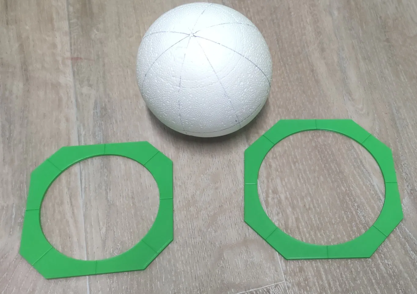 Nếu bạn là một người yêu thích bộ môn làm đồ thủ công patchwork (kỹ thuật ghép vải) trên các quả cầu xốp, thì đây chính là món phụ kiện không thể thiếu trong bộ đồ nghề của bạn. Bộ khuôn mẫu này được thiết kế chuyên biệt để giúp việc phân chia các múi trên quả cầu xốp trở nên cực kỳ chính xác và nhanh chóng. Thay vì phải đo đạc thủ công bằng thước dây hay mắt thường, bạn chỉ cần đặt khuôn lên bề mặt quả cầu, dùng bút đánh dấu theo các khe có sẵn là sẽ có ngay các đường kẻ đều tăm tắp.