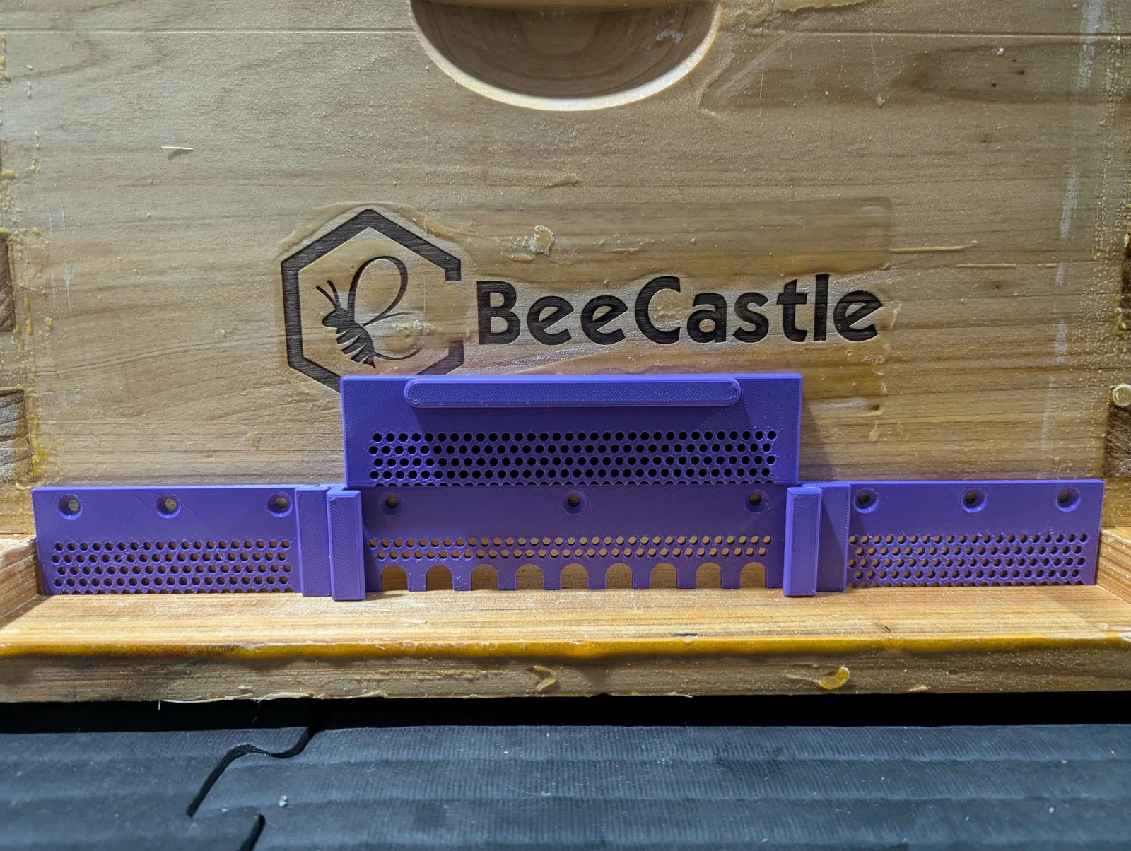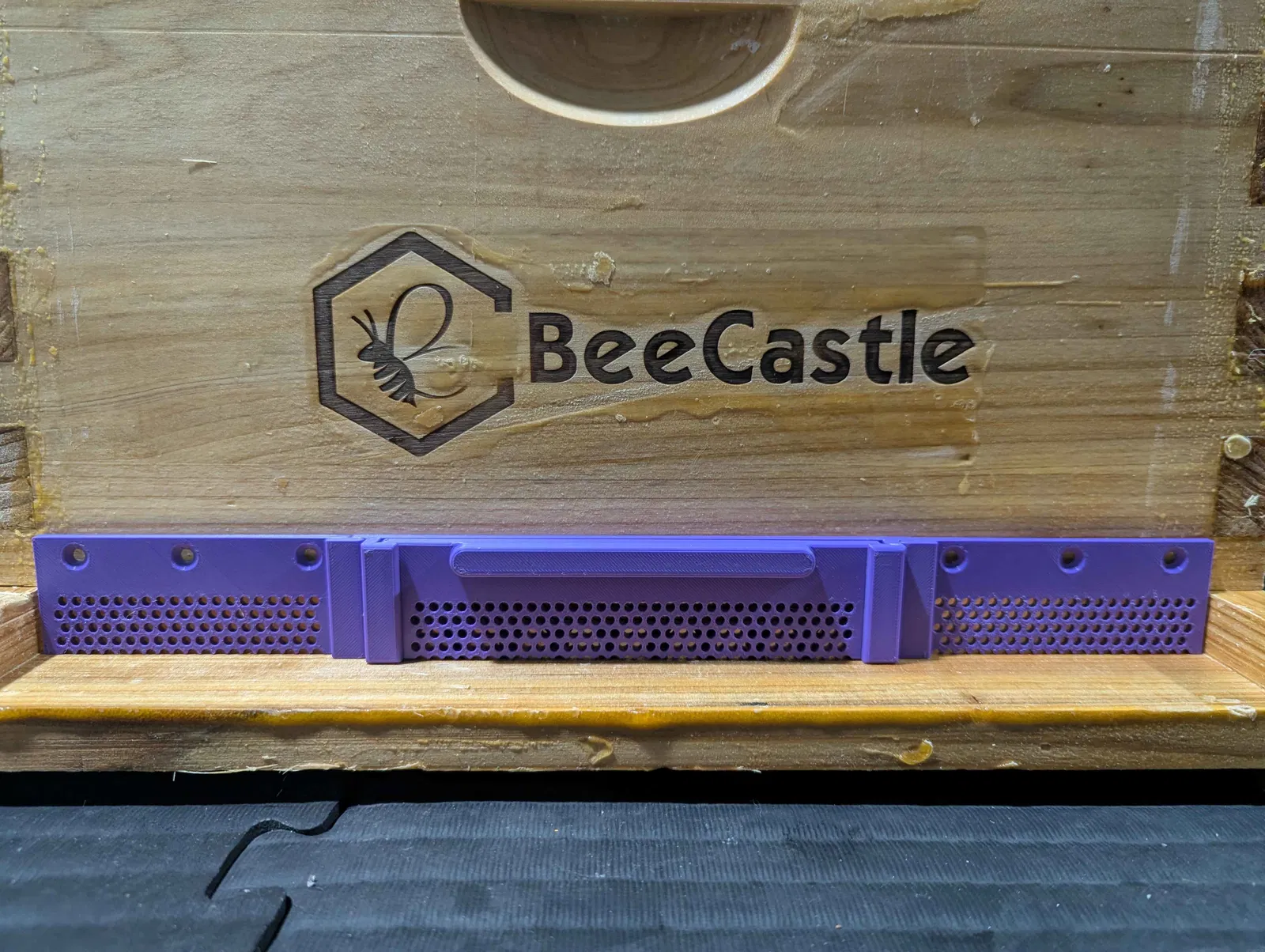 Thiết bị thu hẹp cửa tổ ong (Entrance Reducer) kết hợp tấm chắn chuột (Mouse Guard), thiết kế có cửa tháo rời và các lỗ thông gió giúp không khí lưu thông ngay cả khi đóng cửa hoàn toàn (ngăn chặn độ ẩm/ngưng tụ vào mùa đông trong khi vẫn ngăn được chuột và sâu bọ), rất tiện lợi cho việc di chuyển đàn ong.