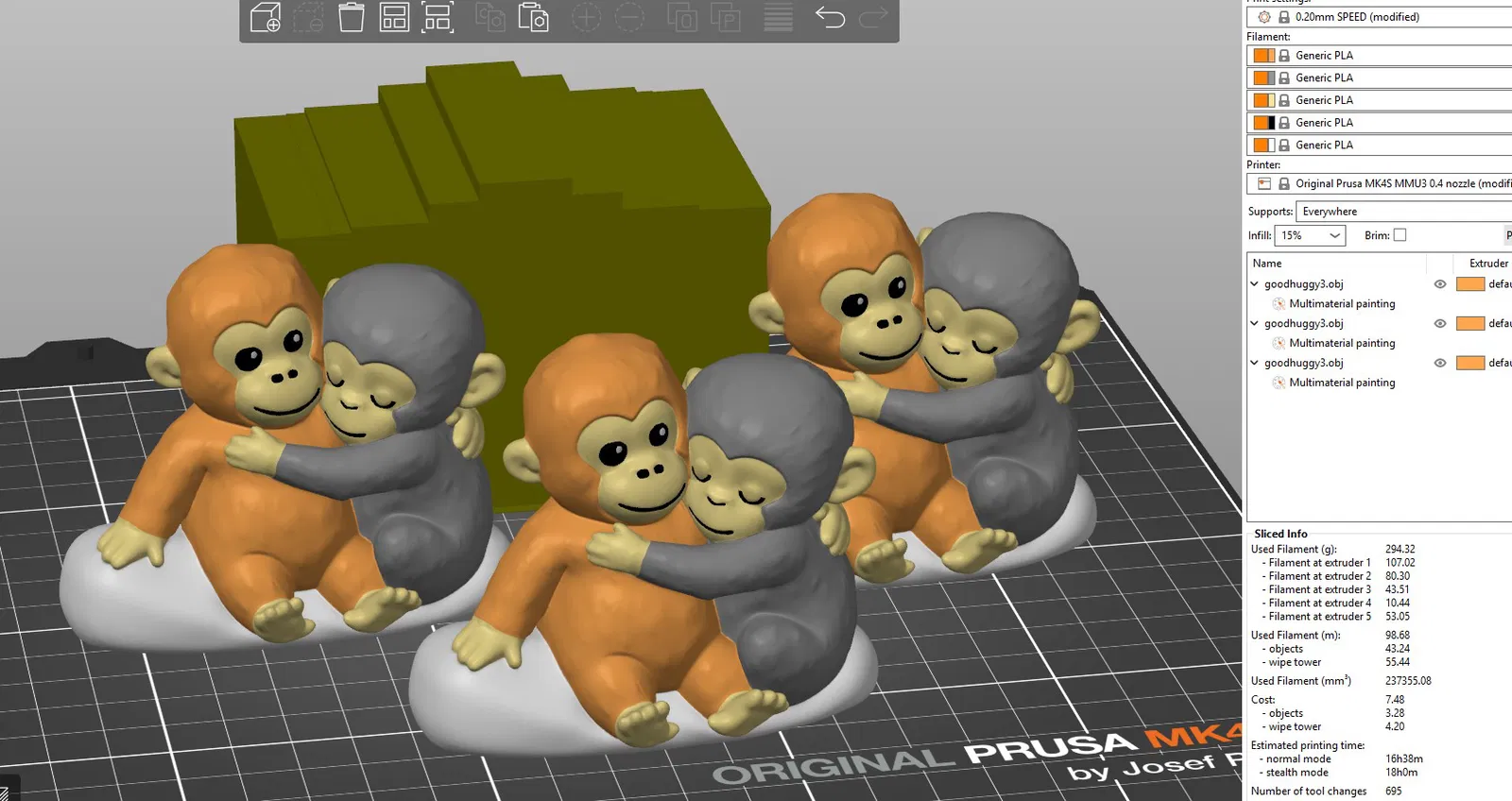 Mô hình Punch the Monkey và người bạn được thiết kế tối ưu cho in MMU. Tài liệu hướng dẫn chi tiết cách thiết lập 4-5 màu in, hỗ trợ support, cấu hình tháp lau và cài đặt in ấn để có kết quả đẹp nhất cho máy của bạn.