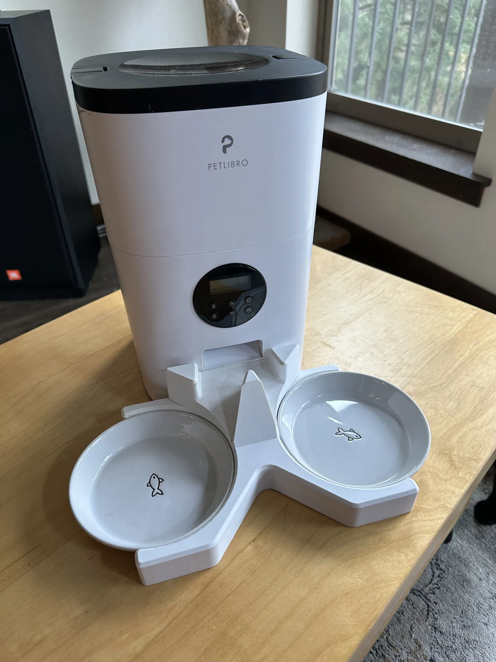 Nếu bạn đang nuôi hai bé cưng trong nhà và sở hữu máy cho ăn tự động PETLIBRO 4L (model PLAF001), chắc hẳn bạn đã từng gặp tình trạng các bé tranh giành nhau khi máy nhả thức ăn. Bộ chia thức ăn 3D này chính là giải pháp đơn giản nhưng cực kỳ hiệu quả giúp bạn giải quyết vấn đề đó ngay lập tức. Thiết kế thông minh này được tạo ra để lắp đặt vừa khít vào miệng ra thức ăn của máy, hướng hạt sang hai hướng khác nhau vào hai bát riêng biệt.