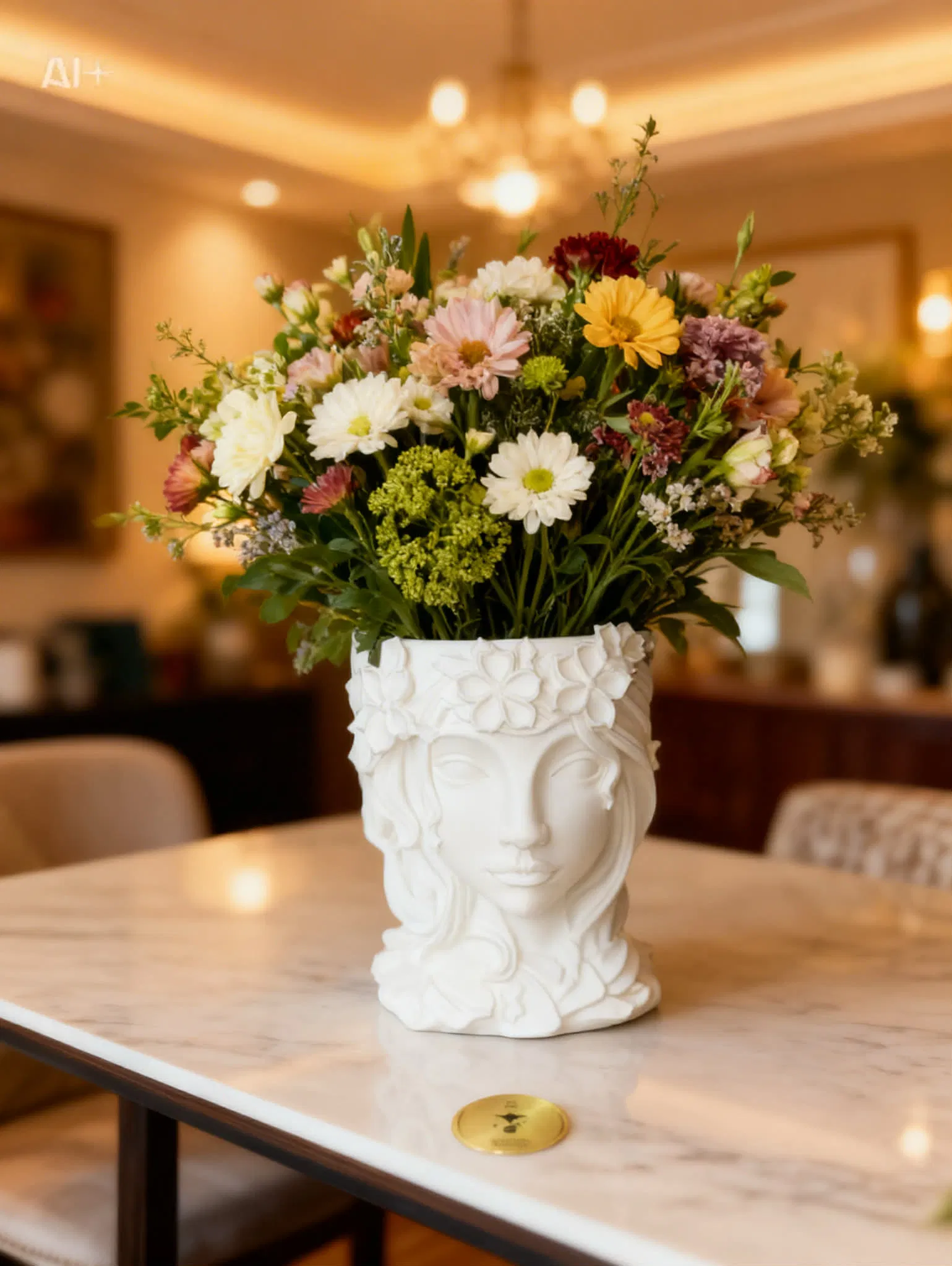 Sản phẩm này cực kỳ linh hoạt trong cách sử dụng. Bạn có thể dùng nó như một chiếc chậu trồng các loại cây cảnh nhỏ, cây mọng nước (succulent) hay để cắm hoa tươi, hoa khô trang trí trên bàn ăn, kệ sách hoặc bàn làm việc. Sự kết hợp giữa vẻ đẹp cổ điển của tượng điêu khắc và sự tiện dụng hiện đại khiến nó trở thành điểm nhấn ấn tượng cho bất kỳ căn phòng nào, từ phong cách tối giản đến phong cách vintage lãng mạn.
