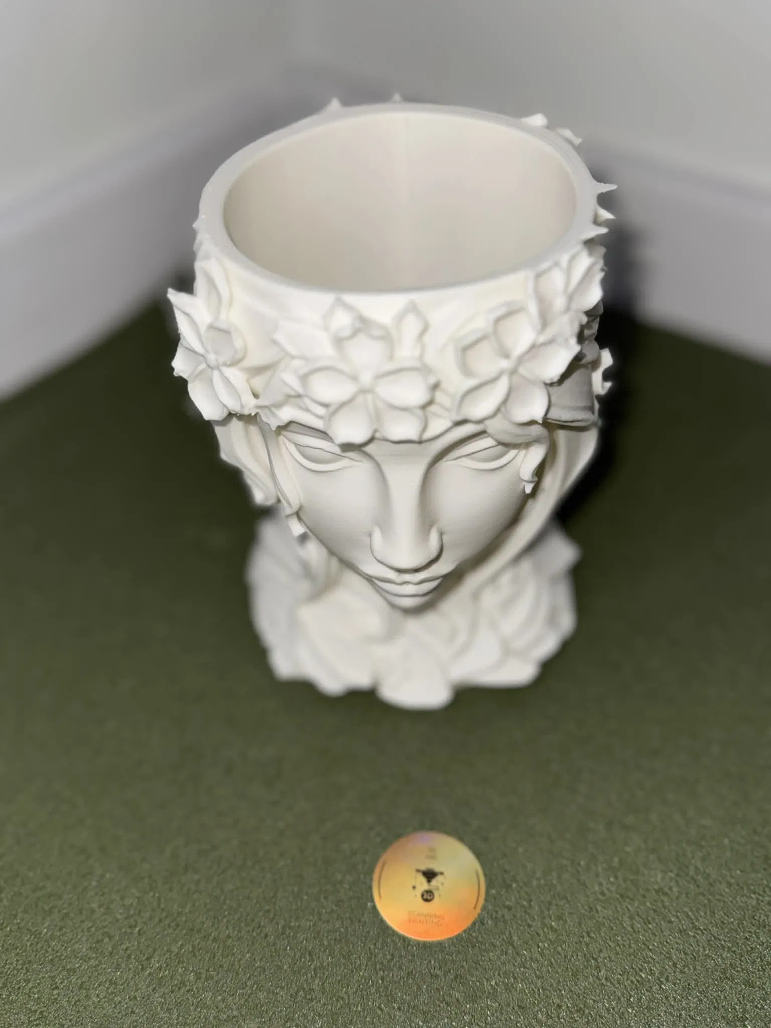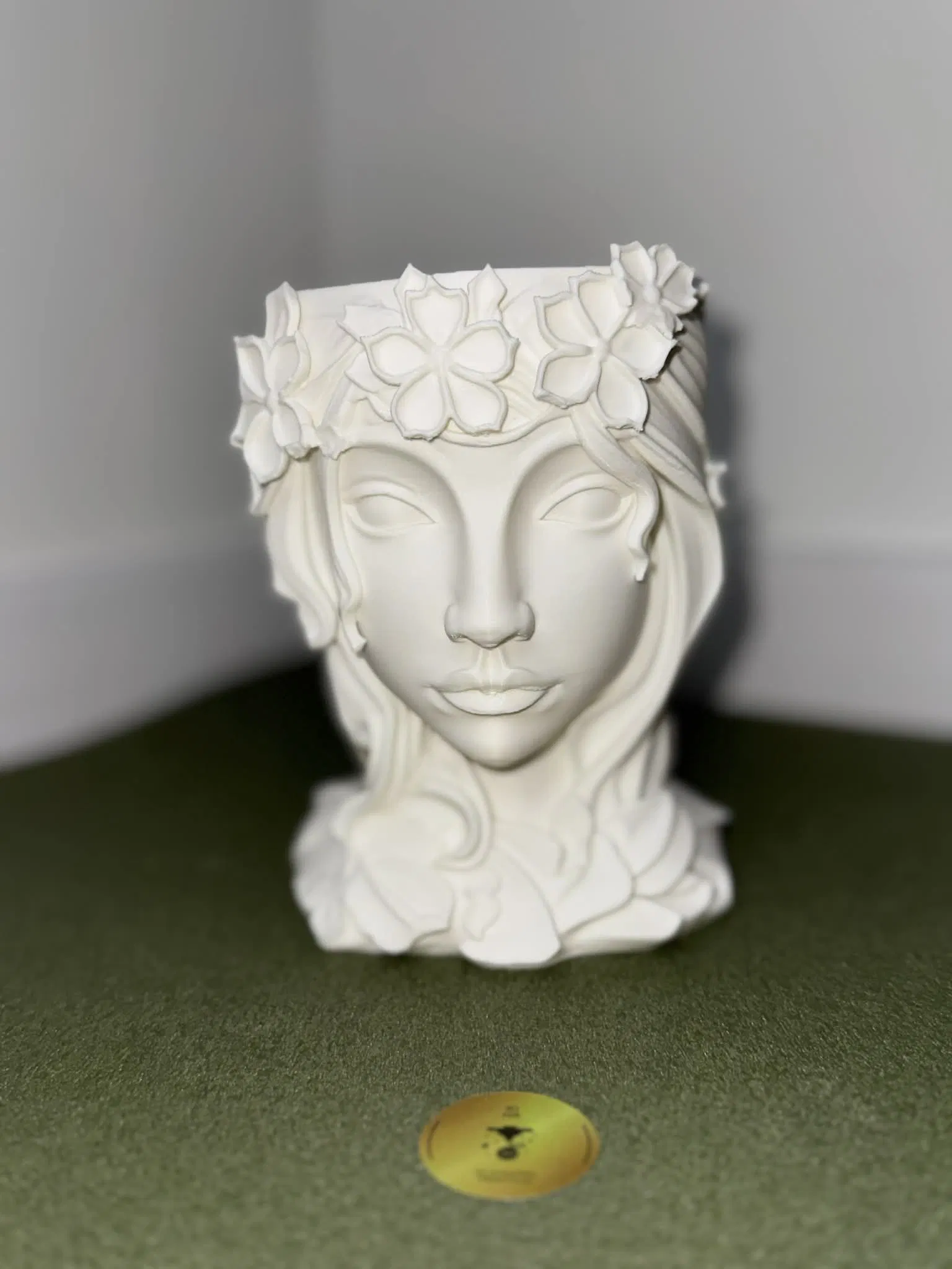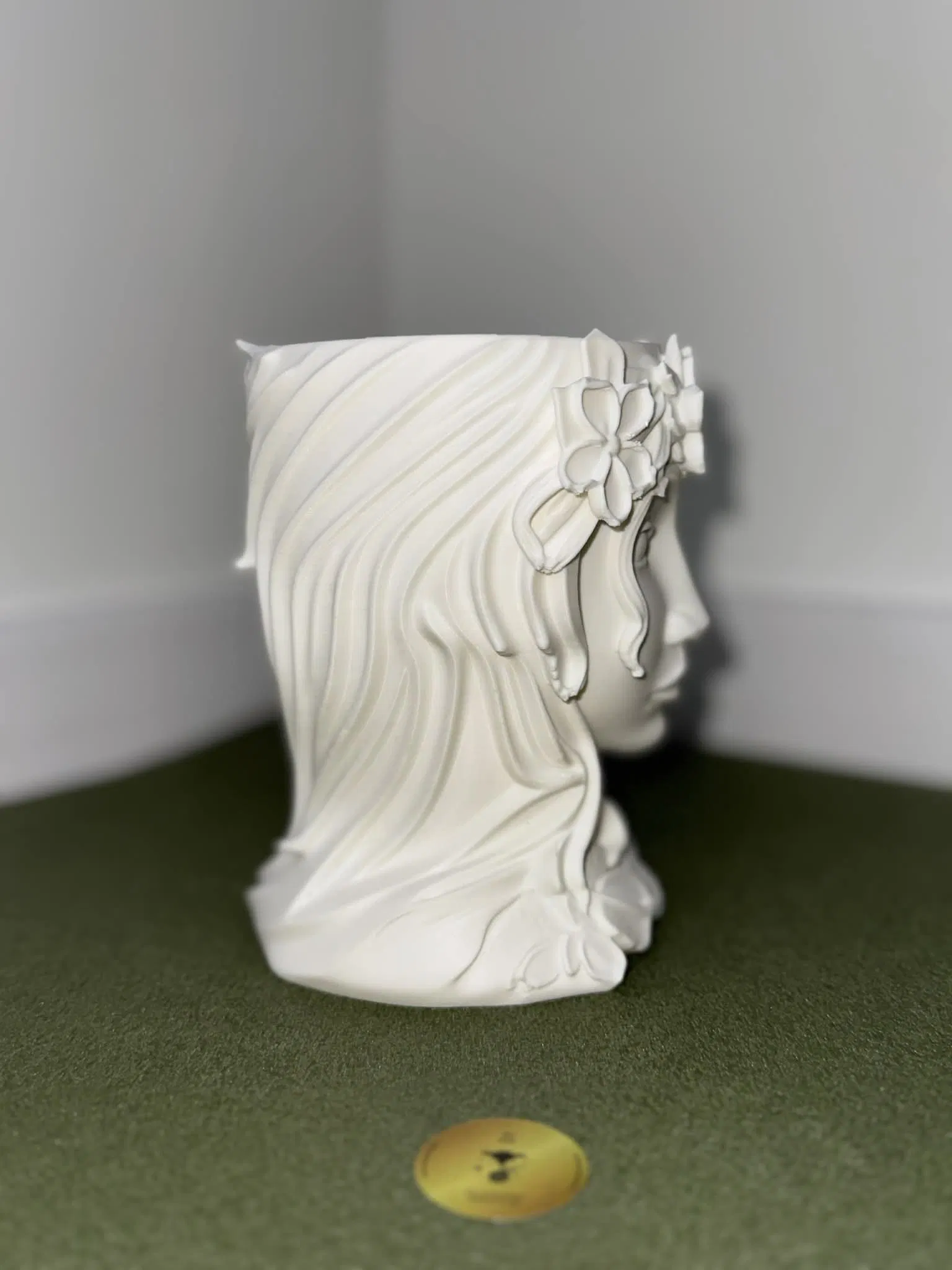 Mang đến vẻ đẹp đầy tính nghệ thuật cho không gian sống với mẫu chậu cây chân dung thiếu nữ (female portrait) độc đáo. Được thiết kế với những chi tiết tinh xảo như vòng hoa cài tóc và khuôn mặt thanh tú, đây là món đồ trang trí hoàn hảo cho bàn làm việc, kệ sách hoặc làm điểm nhấn trên bàn ăn. Bạn có thể dễ dàng in 3D sản phẩm này bằng nhựa PLA để trồng các loại cây cảnh nhỏ hoặc cắm hoa decor. Thiết kế không chỉ mang tính ứng dụng cao mà còn là một tác phẩm điêu khắc ấn tượng, giúp không gian của bạn trở nên sang trọng và đầy cảm hứng hơn bao giờ hết.