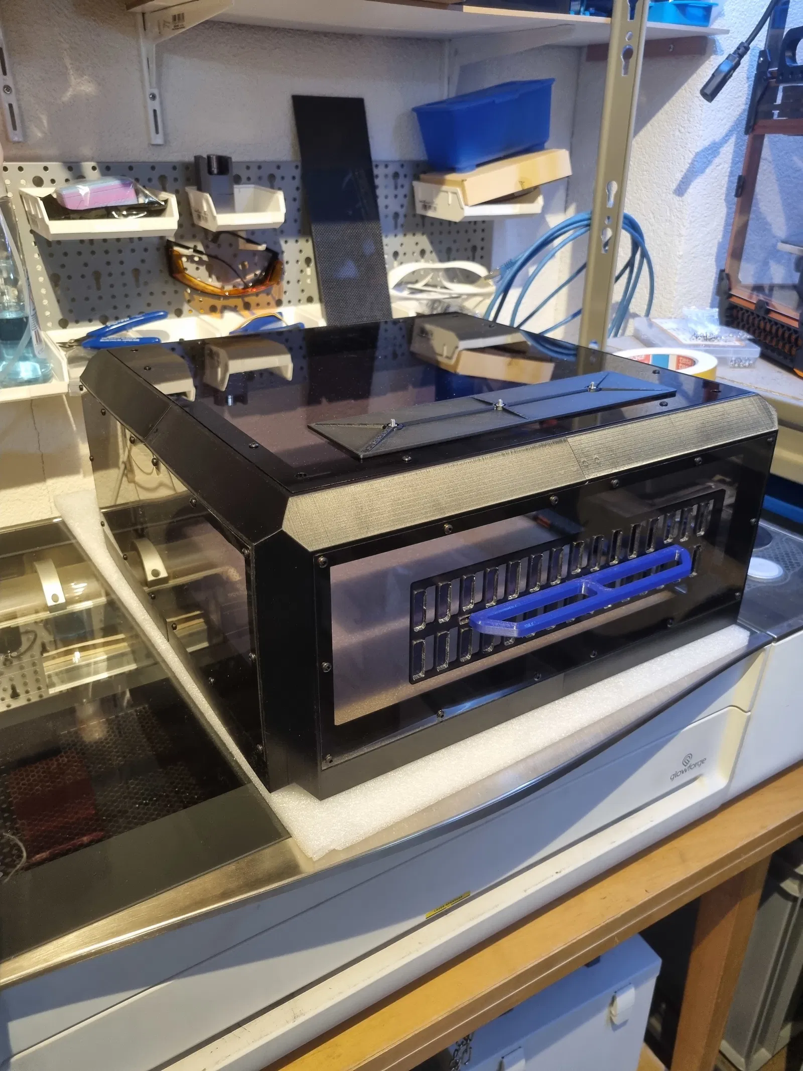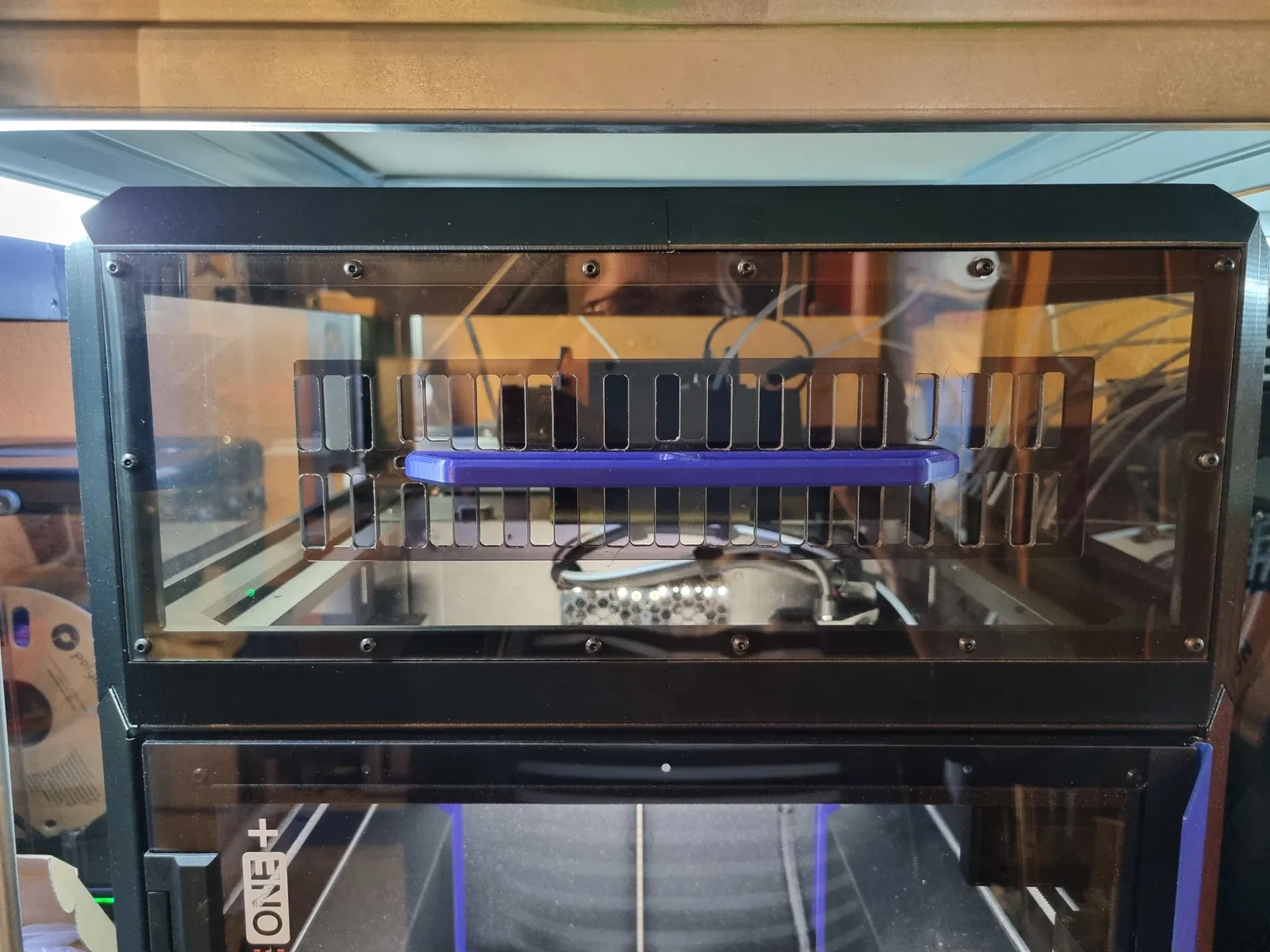 Do thiếu không gian, mình đã tự thiết kế một tấm mặt nạ trước thay thế cho chiếc Core One+ OneTop của mình. Phần nắp quạt có thể đóng mở dễ dàng ngay phía trước chỉ với một thao tác. Mình đã cố định tấm che trên đỉnh bằng một miếng khóa kèm theo ba con ốc vít.