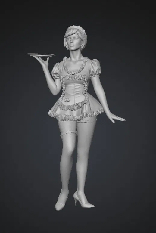 Mẫu in 3D Noir Maid with Tray là một tác phẩm mô hình nhân vật độc đáo, khắc họa hình ảnh một cô gái trong trang phục hầu bàn phong cách cổ điển nhưng không kém phần quyến rũ. Nhân vật được thiết kế với tư thế thanh lịch, tay phải nâng một chiếc khay nhỏ, tạo cảm giác như đang phục vụ trong một không gian tiệc tùng sang trọng. Từng đường nét trên trang phục, từ các chi tiết bèo nhún đến nếp gấp trên váy đều được thể hiện tinh tế, mang lại vẻ đẹp sinh động và chân thực cho tác phẩm khi bạn hoàn thành việc in ấn.