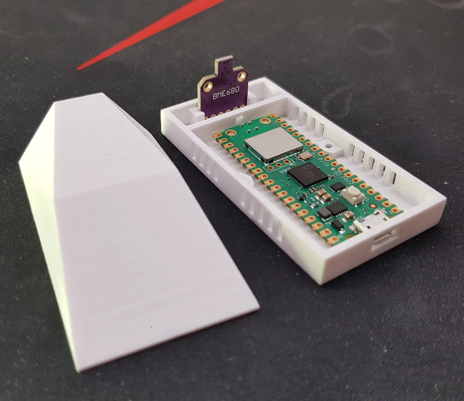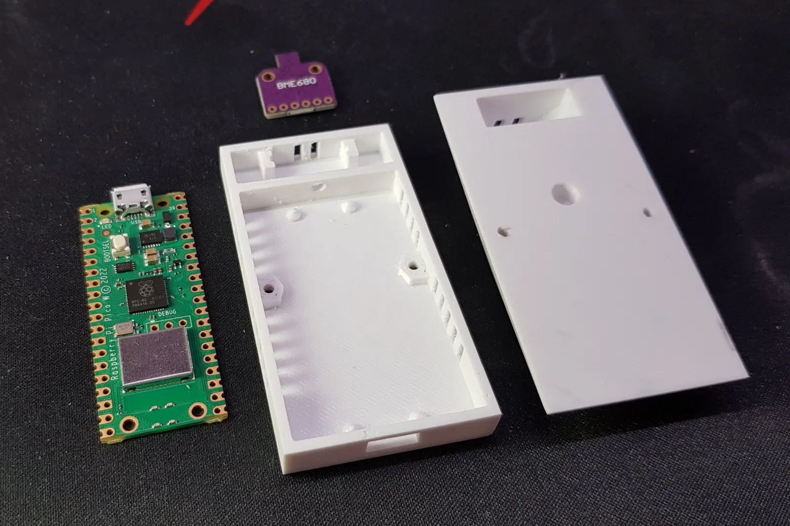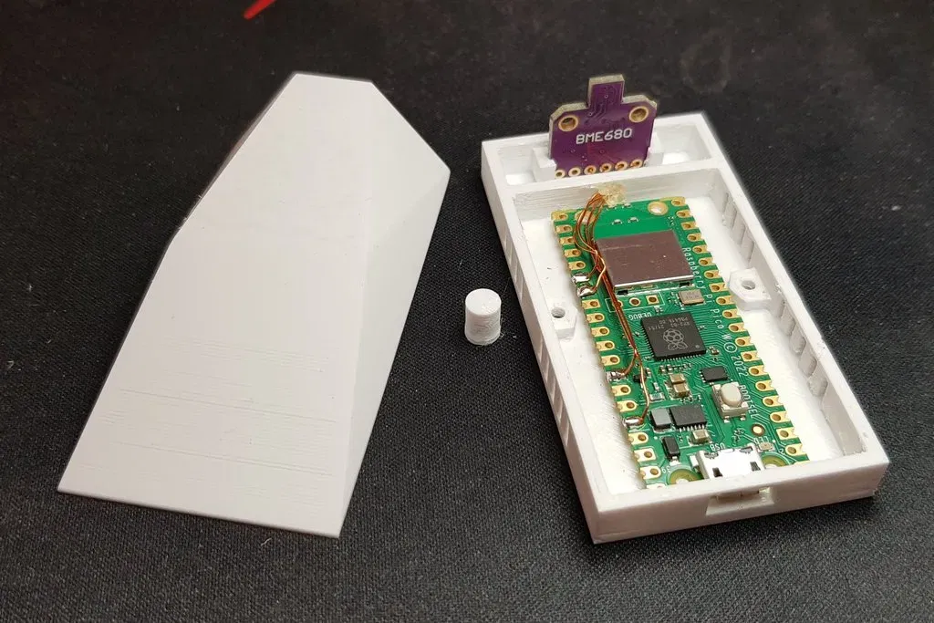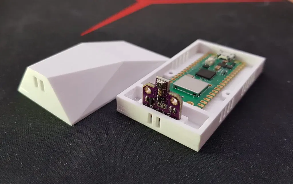Hộp cho cảm biến khí BME680. ### Dự án https://github.com/heximcz/raspberry-pico-mqtt-bme680 ### Cài đặt in ấn Thương hiệu máy in: Creality Máy in: Ender 3 Pro Giá đỡ: Không Hỗ trợ: Không Độ phân giải: 0.16 Tỉ lệ lấp đầy: 15% Vật liệu in: Design Devil PET-G Màu trắng Ghi chú: Mô hình được chuẩn bị để nhiệt độ của bộ xử lý không ảnh hưởng đến phép đo, hoặc chỉ ảnh hưởng tối thiểu. Tôi khuyên bạn nên niêm phong lối đi cho dây dẫn đến cảm biến sau đó để ngăn nhiệt từ bộ xử lý truyền sang cảm biến. Mô hình cũng được thiết kế để có thể mài nhẵn dưới nước ở giai đoạn cuối. Nó cũng bao gồm một trụ đệm có thể được chèn vào nắp từ dưới lên sau khi hoàn thiện. Nó phục vụ để đảm bảo vị trí của bo mạch Raspberry. Các ốc vít sử dụng là M2/12mm với đầu hình trụ. MỚI: ...BOX_TOP_v2.stl - cải thiện thông gió cho không gian với bo mạch RPi Các bộ phận khác được sử dụng trong dự án này: https://www.f3d.vn/3d-model/24282-hop-cho-mo-dun-ro-le-voi-kep-ray-din https://www.f3d.vn/3d-model/24285-bia-gan-tuong-cho-man-hinh-led-7-inch-waveshare