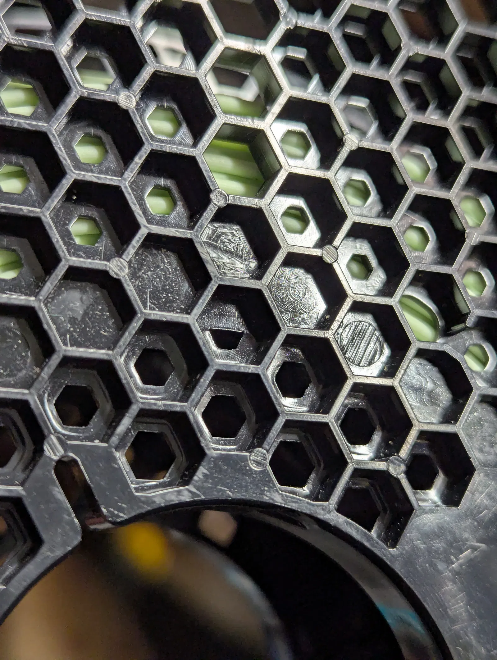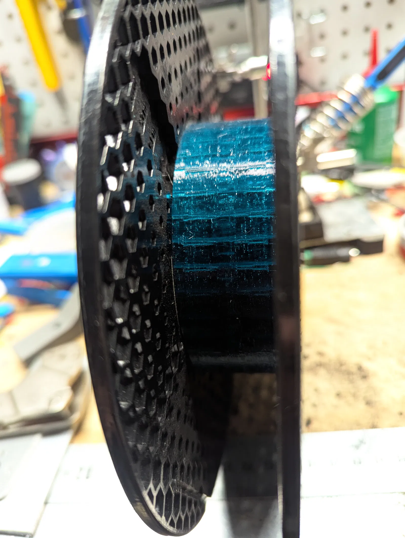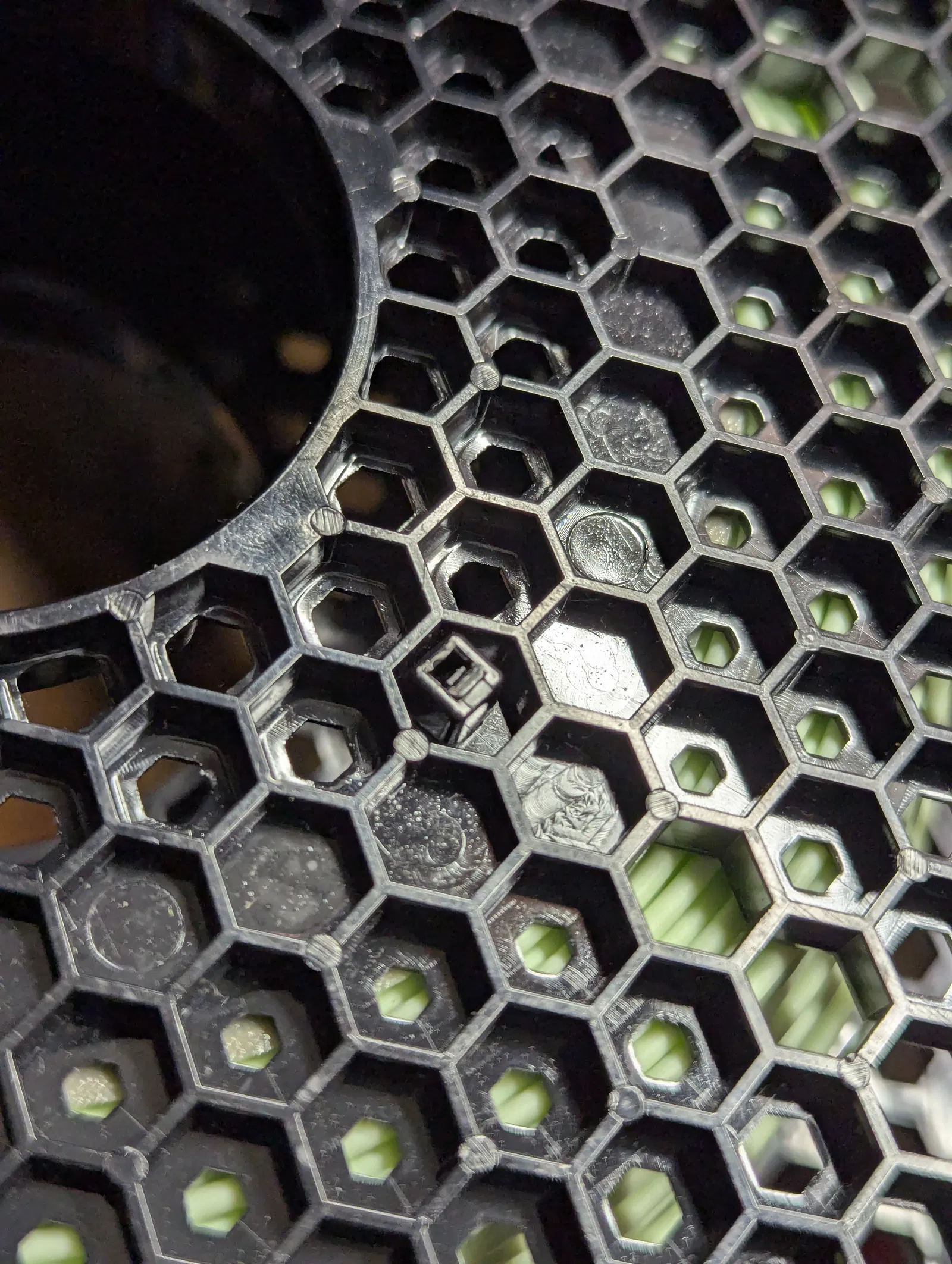 Trên lõi có các lỗ hình lục giác khuyết, rất vừa vặn với mấy sợi dây rút đen thường thấy khi mua máy in Prusa!