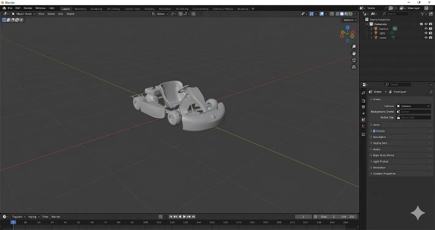Mô hình 3D xe đua Go Kart chi tiết
