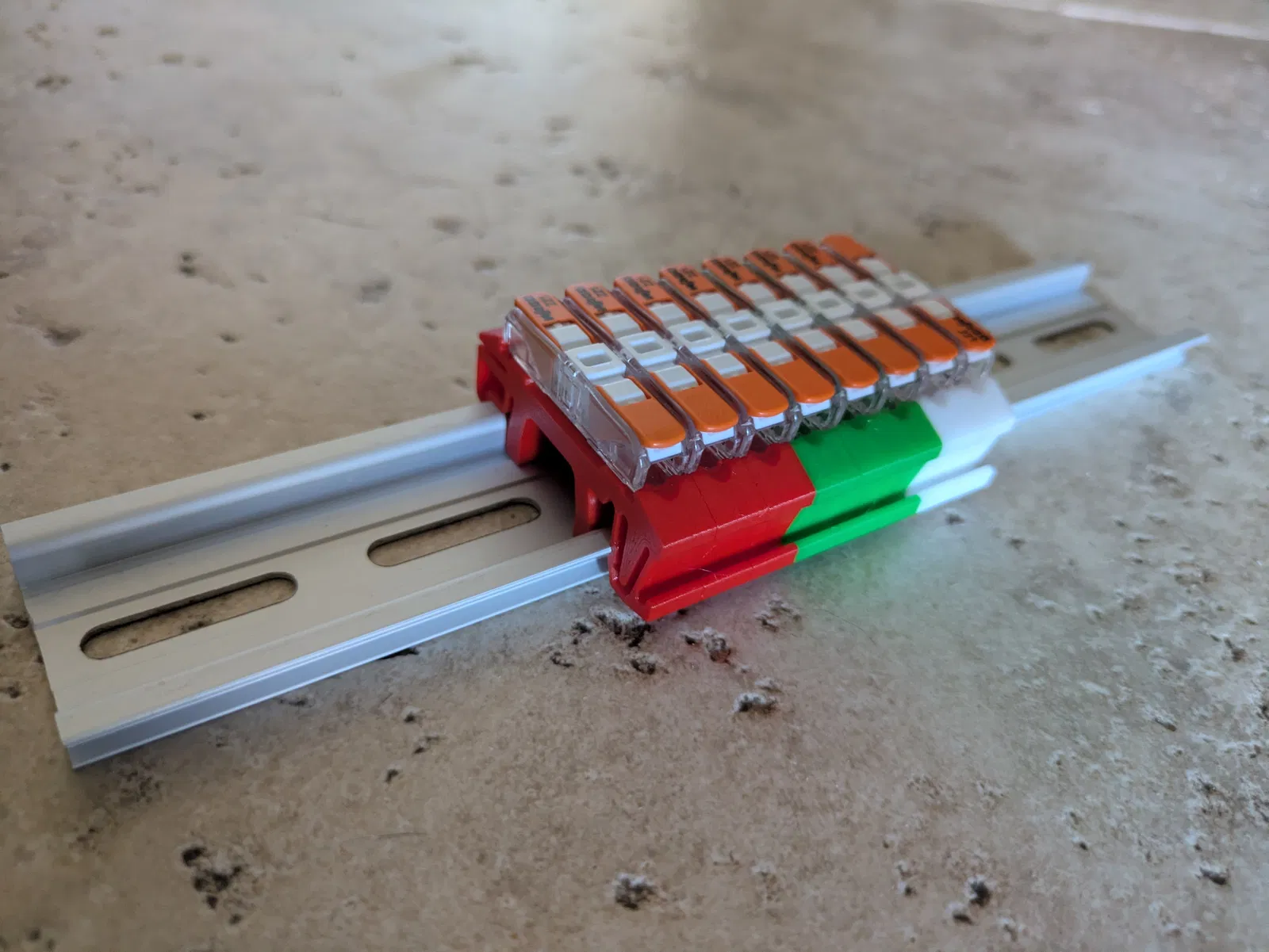 Ngàm kẹp thanh ray DIN cho Wago 221-2411 đơn giản, chắc chắn và không cần dùng dụng cụ, dựa trên thiết kế gốc của Bryan. Bạn lắp Wago từ bên hông, căn giữa phía có lẫy khóa rồi nhấn phía còn lại xuống và xoay vào vị trí. Ngàm này được thiết kế ôm khít giúp giữ Wago cực kỳ chắc chắn sau khi lắp đặt.