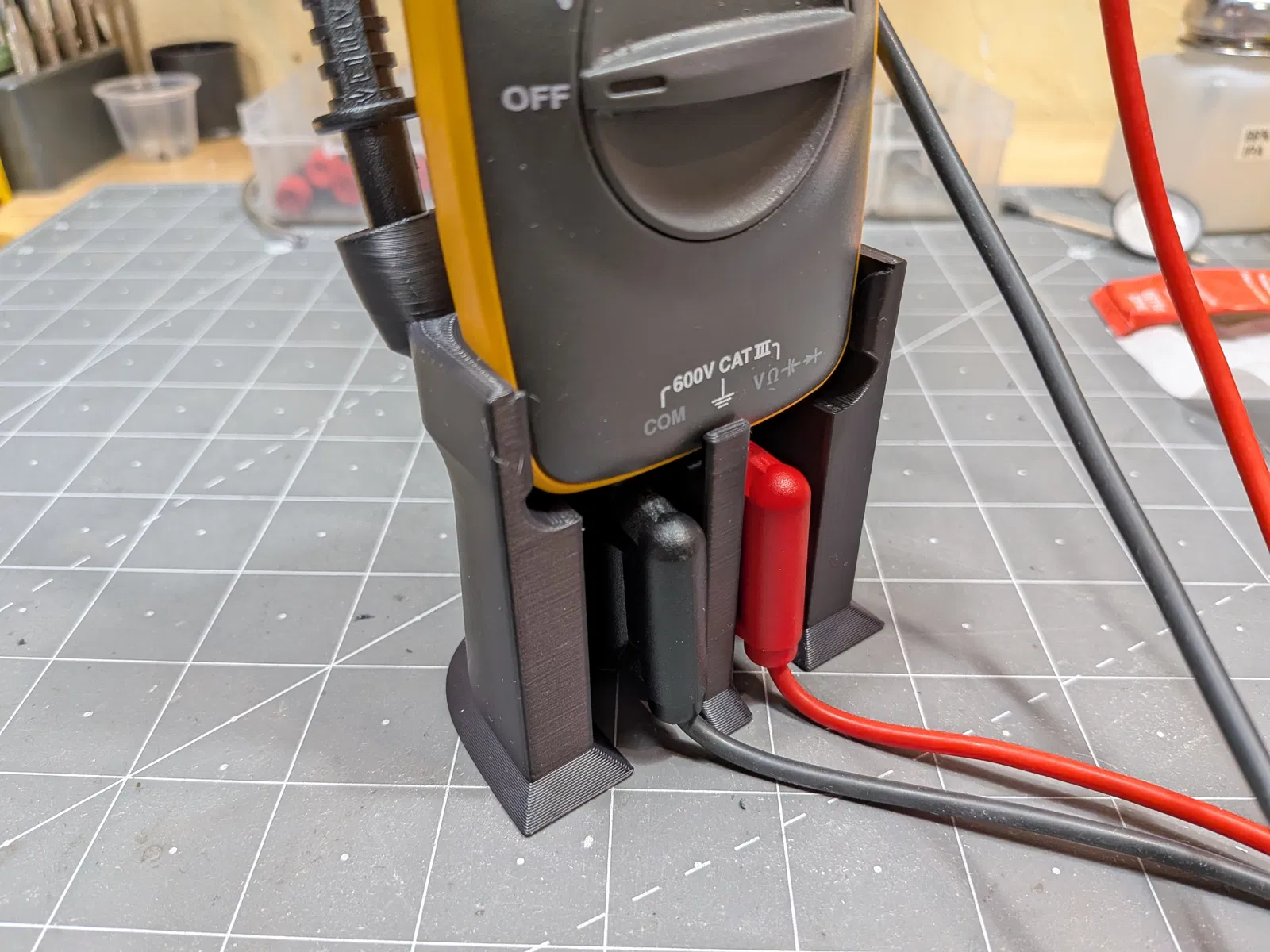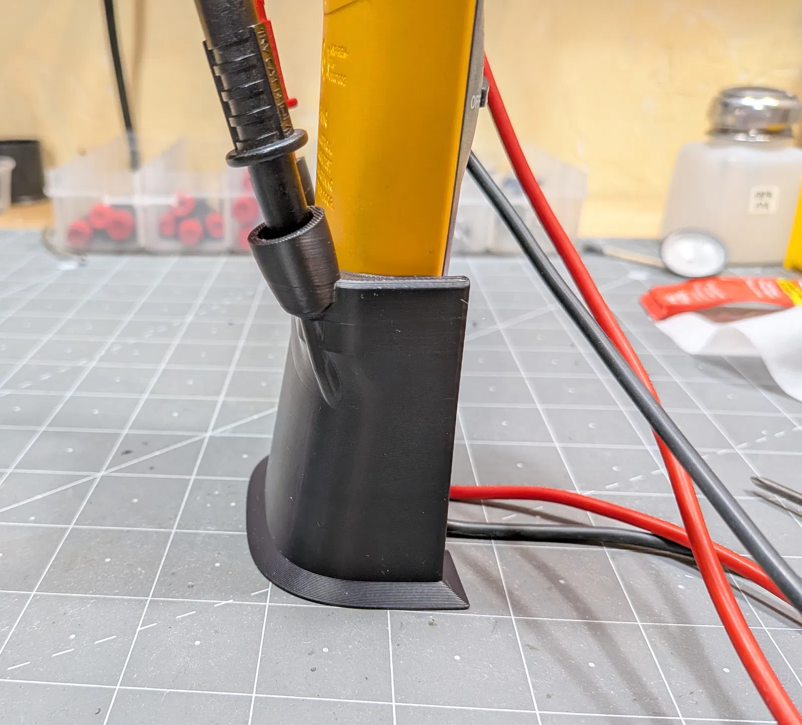 Bạn đang tìm kiếm một giải pháp để giữ chiếc đồng hồ vạn năng Fluke 101 gọn gàng trên bàn làm việc? Hãy thử ngay mẫu đế giữ 3D chuyên dụng này. Được nâng cấp từ các thiết kế cũ, phiên bản này được tinh chỉnh với phần chân đế cắt khoét rộng rãi, cho phép chứa các loại que đo với phần giắc cắm dài một cách dễ dàng và an toàn. Thiết kế mới còn gia cố thêm chân chống phía sau và gờ trước để tăng độ vững chãi, giúp đồng hồ đứng vững ngay cả khi cuốn dây đo quanh thân. Đây là một phụ kiện 3D hữu ích, giúp kỹ thuật viên sắp xếp thiết bị khoa học, tiết kiệm không gian và bảo vệ dụng cụ làm việc tốt hơn. Mẫu in này dễ dàng thực hiện bằng chất liệu PLA hoặc PETG mà không cần quá nhiều hỗ trợ kỹ thuật phức tạp.