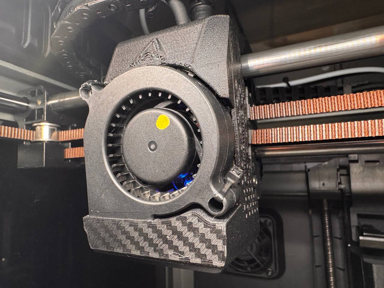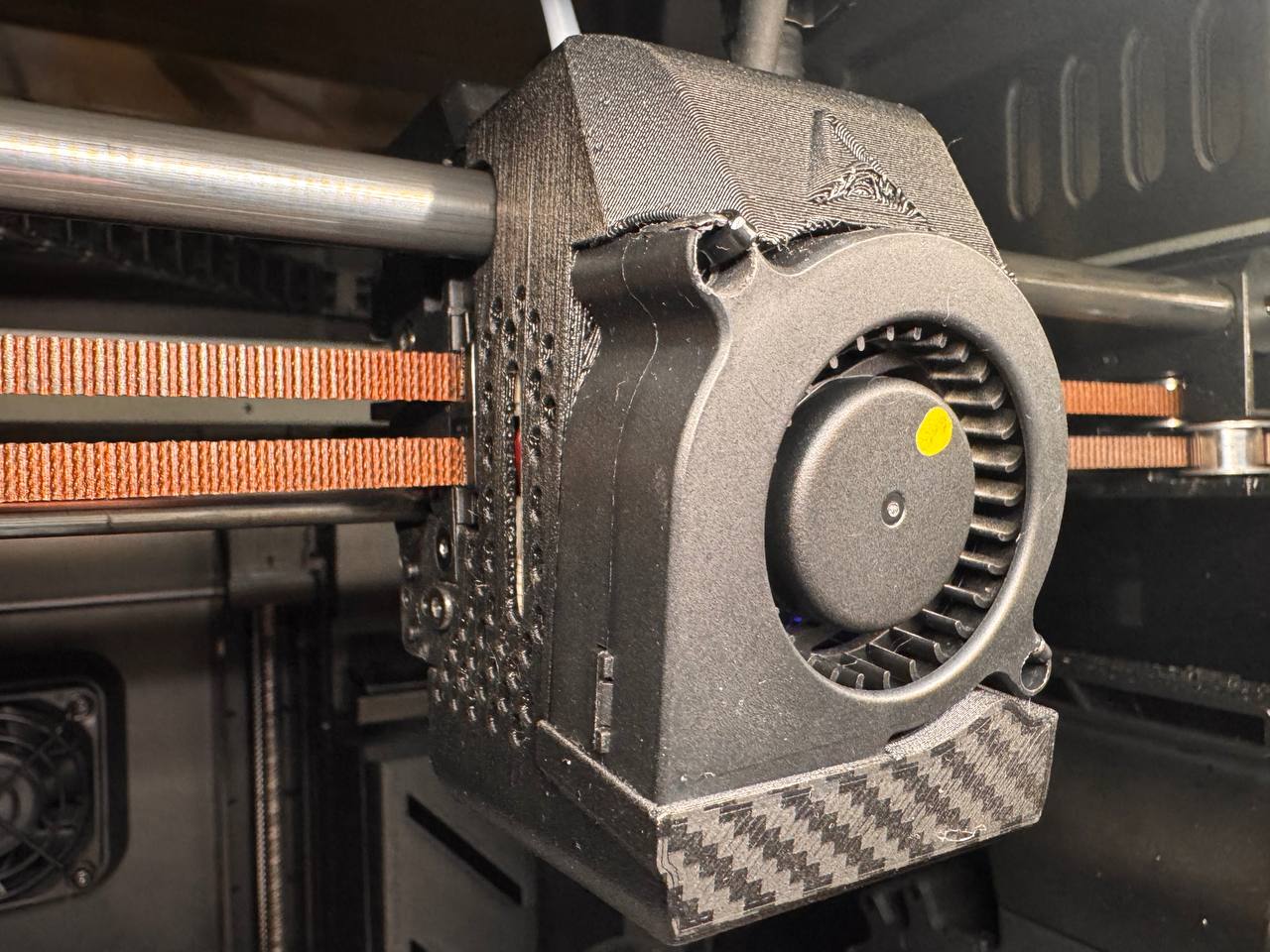 Điểm cộng lớn của bản thiết kế này là sự tinh gọn và khả năng lắp đặt linh hoạt. Người dùng có thể dễ dàng cố định quạt 5020 bằng dây rút nhựa (nylon cable ties), một cách làm rất phổ biến trong cộng đồng in 3D vì sự chắc chắn và tiện lợi. Việc thay đổi sang quạt 5020 giúp cải thiện hiệu suất tản nhiệt đáng kể, đặc biệt khi bạn in các vật liệu cần làm mát nhanh hoặc in ở tốc độ cao, giúp bề mặt chi tiết in sắc nét và giảm thiểu hiện tượng chảy nhựa.