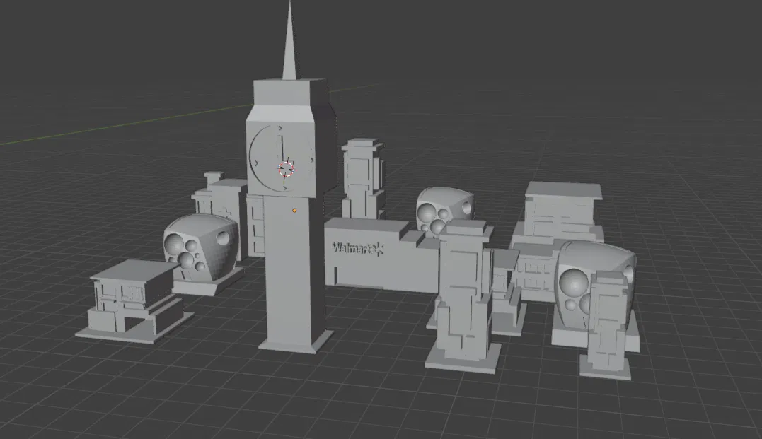 • Một tòa nhà có hình dáng sinh học (biomorphic) để khám phá các không gian công cộng hoặc văn hóa mang tính hữu cơ • Một cấu trúc theo phong cách brutalism đại diện cho kiến trúc thể chế hoặc dân dụng mật độ cao • Một tòa nhà bán lẻ kiểu Walmart để mô phỏng khu thương mại • Một ngôi nhà hiện đại cho các kịch bản quy hoạch khu dân cư • Một tháp đồng hồ đóng vai trò là điểm mốc (landmark) • Một tòa nhà bệnh viện đại diện cho cơ sở hạ tầng công cộng thiết yếu