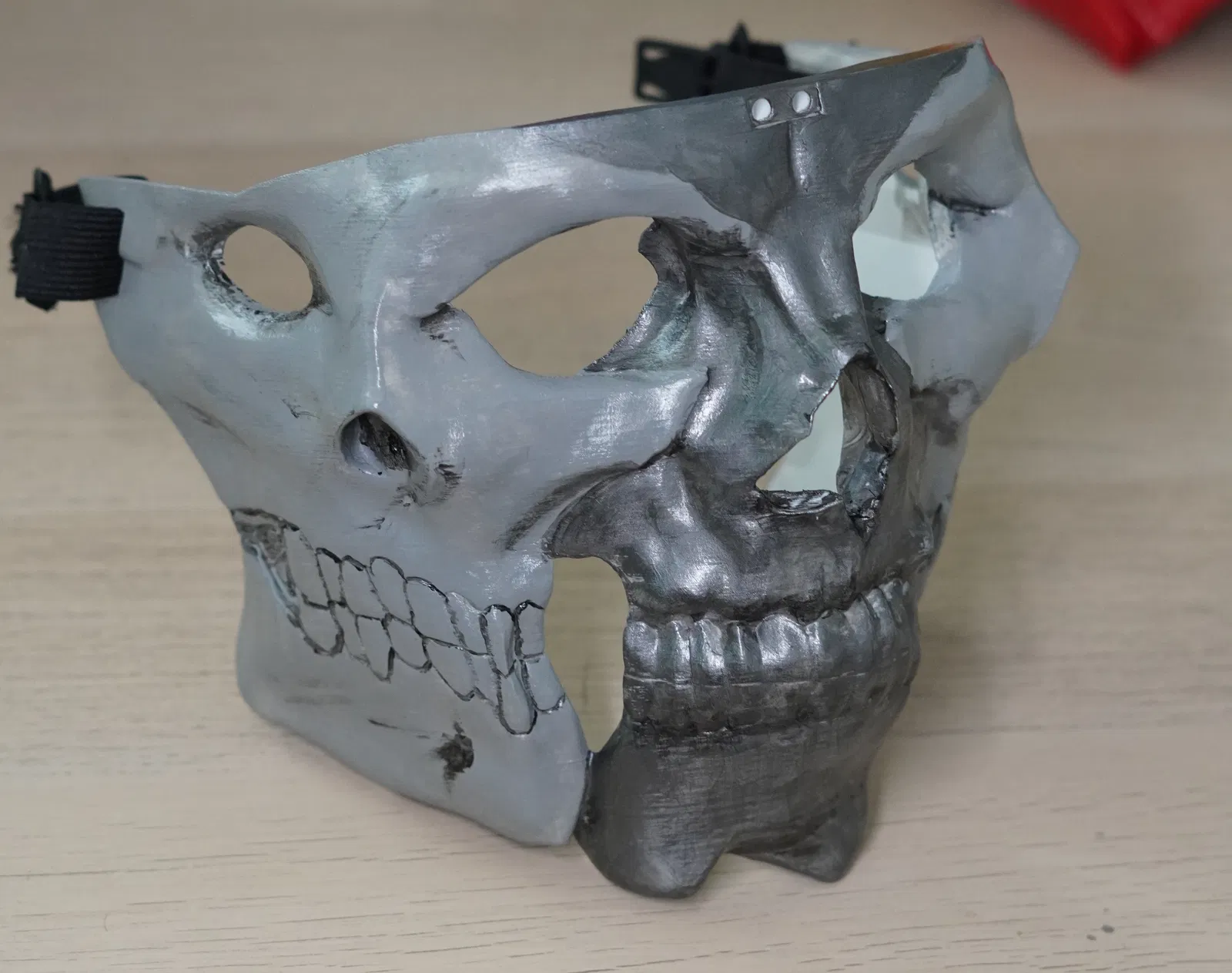 Ngoài ra, mô hình còn có một điểm gắn chưa sử dụng ở phía trước trên cùng, phòng trường hợp bạn cần móc mặt nạ vào mũ. Theo thử nghiệm của mình thì lực kéo từ dây thun và hình dáng của mặt nạ đã đủ giữ nó cố định rồi, nhưng mình vẫn để lại điểm gắn đó cho chắc ăn.