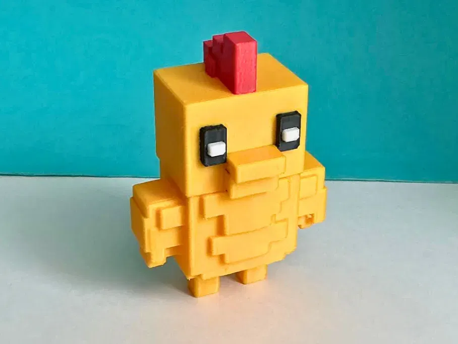 Thiết kế sử dụng các lớp hình học khéo léo để mô phỏng vẻ ngoài pixel, từ chiếc mỏ vàng tươi, mào đỏ cho đến phần thân hình vuông vững chãi. Các đường nét sắc sảo và sự phân chia màu sắc rõ ràng giúp đây trở thành một món đồ nổi bật, làm tôn lên độ chính xác của kỹ thuật in 3D nhiều màu, tạo ra sự tương phản thú vị giữa cảm hứng kỹ thuật số và vật thể thực tế.