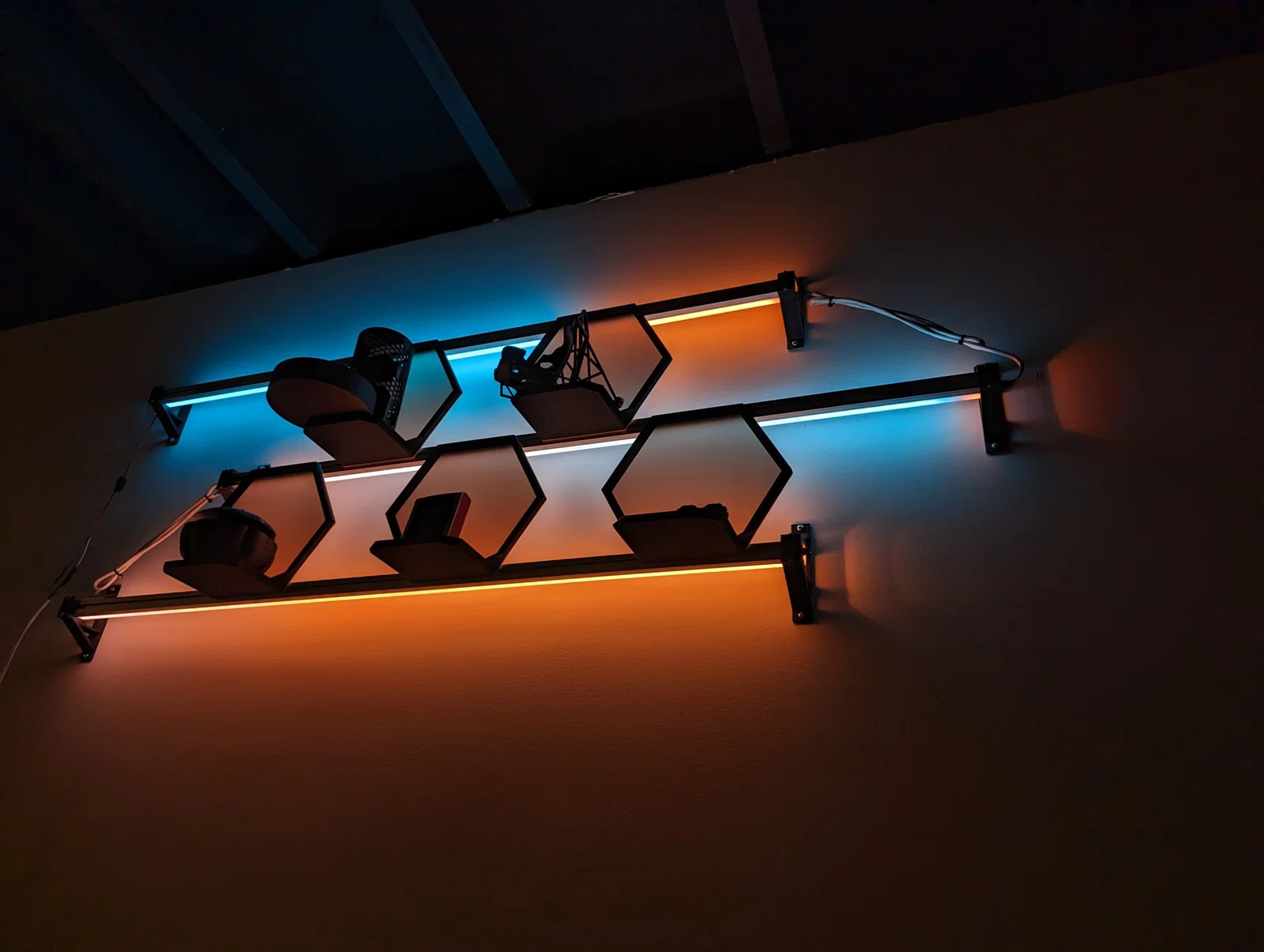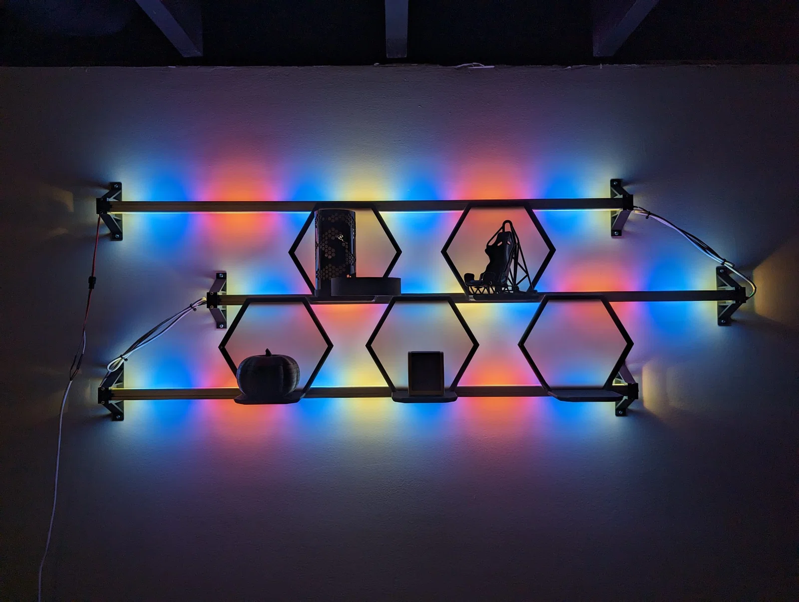 Thiết kế một tấm đỡ để sử dụng với kệ trưng bày. Được bắt vít với nhau bằng các vít máy #4-40. Dán kệ trưng bày vào đây để tăng cường hỗ trợ. Cũng khuếch tán một số ánh sáng cho một dự án đèn nhấn trưng bày một số bản in 3D.