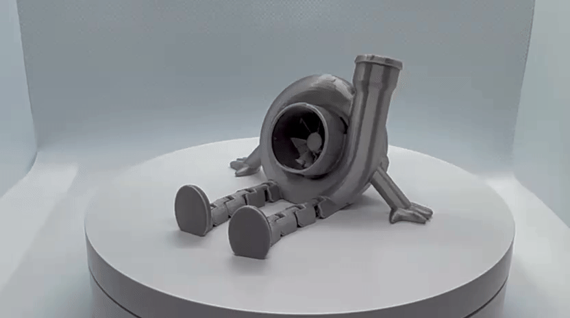 Mô hình Flexi Turbo Buddy với thiết kế khớp nối linh hoạt, mô phỏng bộ tăng áp turbo xe hơi. Sản phẩm in cực nhanh, không cần support, phù hợp làm quà tặng hoặc trang trí cho những người đam mê xe cộ.