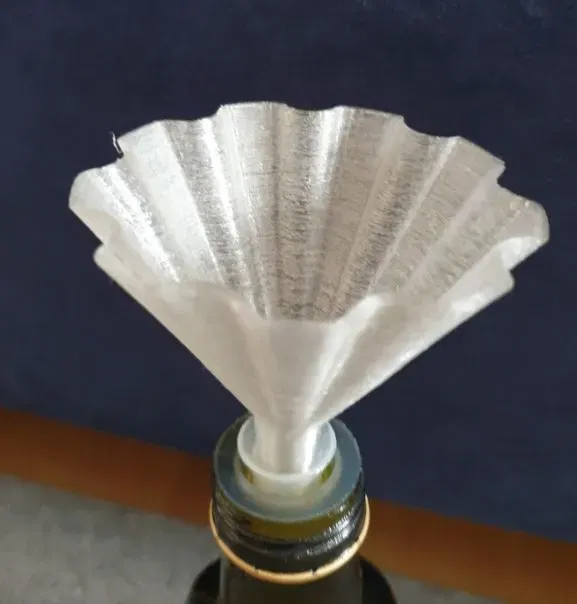 Một phễu có thể được sử dụng để lọc chất lỏng bằng khăn bếp hoặc giấy lọc khác.