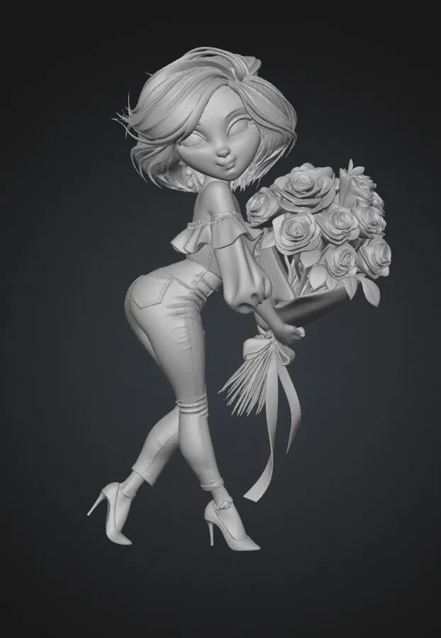 Mô hình 3D cô gái ôm bó hoa hồng (Rosy Bouquet Pose) cực đẹp