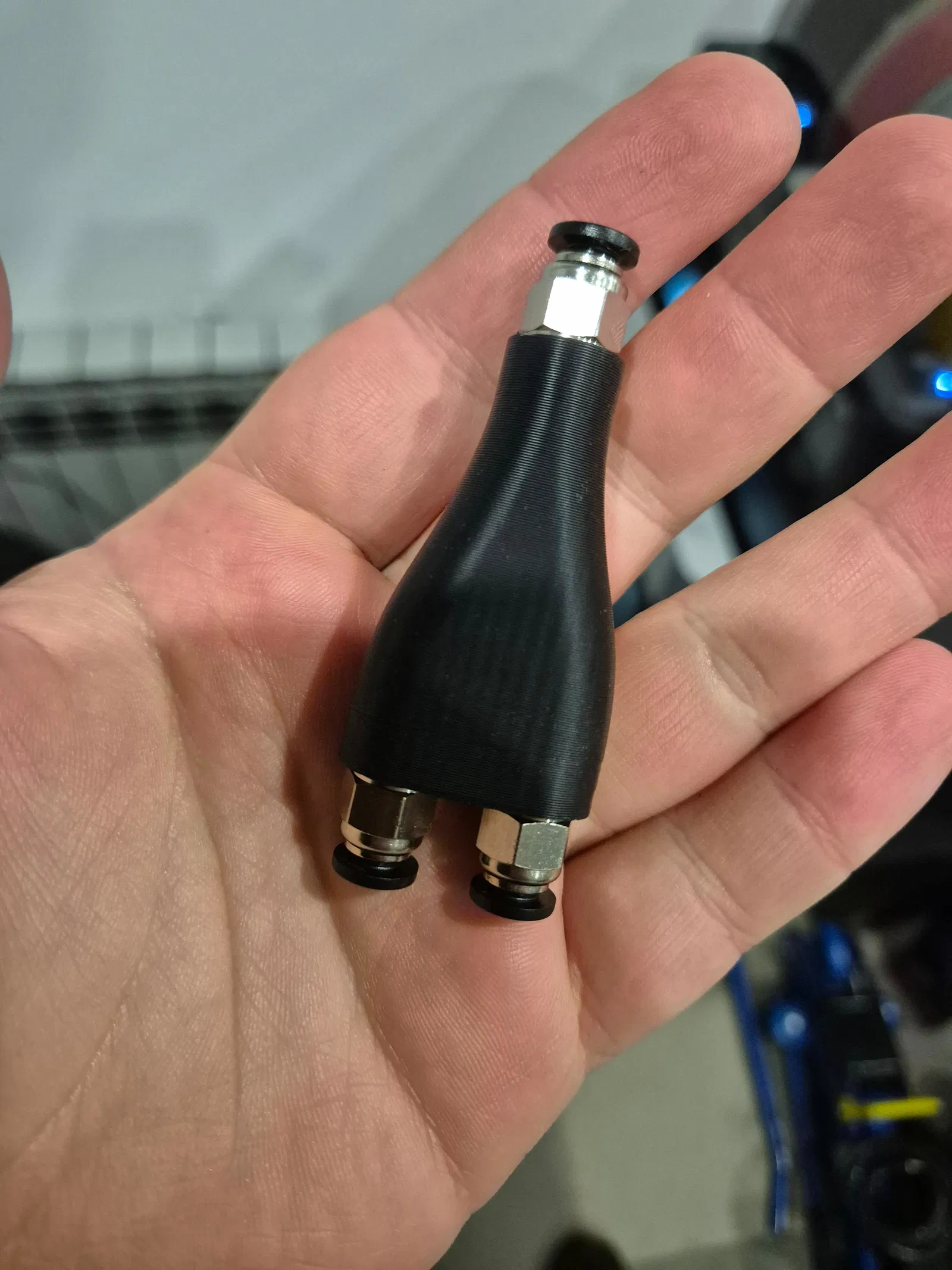 Đầu nối ống dẫn nhựa hình chữ Y dùng khớp nối TPC4-01 (ren BSP 1/8''). Thiết kế này tự tạo ren khi lắp đặt, khuyến khích in bằng nhựa ASA với 4 lớp tường để đảm bảo độ bền tối đa cho chi tiết của bạn.