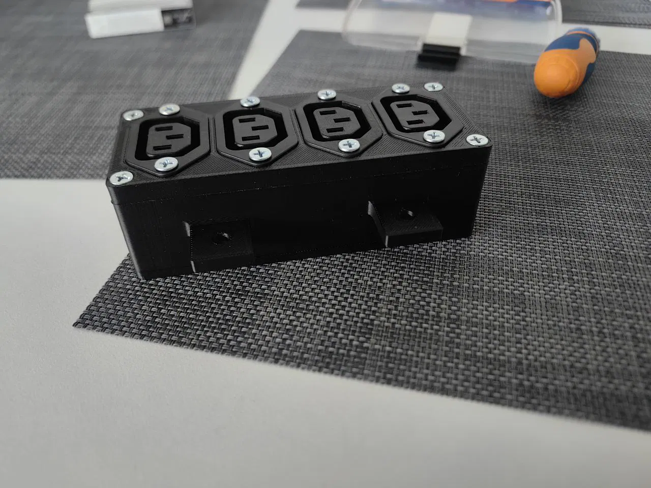 Giải pháp gọn gàng cho hệ thống dây nguồn với 4 cổng chuẩn C13/C14. Thiết kế lắp đặt chắc chắn bằng ốc vít và T-nut, giúp cố định dây điện một cách ngăn nắp trên khung máy in 3D hoặc các thiết bị kỹ thuật của bạn.